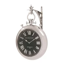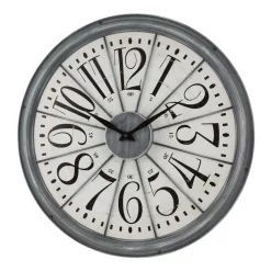 Wall Clocks LITTON LANE 32 In. Round Rustic Black Iron And Wood Antique Roman Numeral Wall Clock
