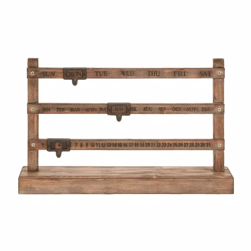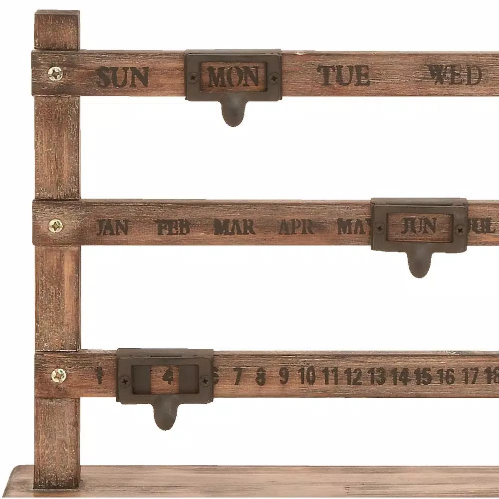 Add a farmhouse chic touch to your home or office with this rustic wood fencepost calendar. Finished in an oak stain and featuring moveable, tarnished iron date markers. Embellished with black stenciled typography.