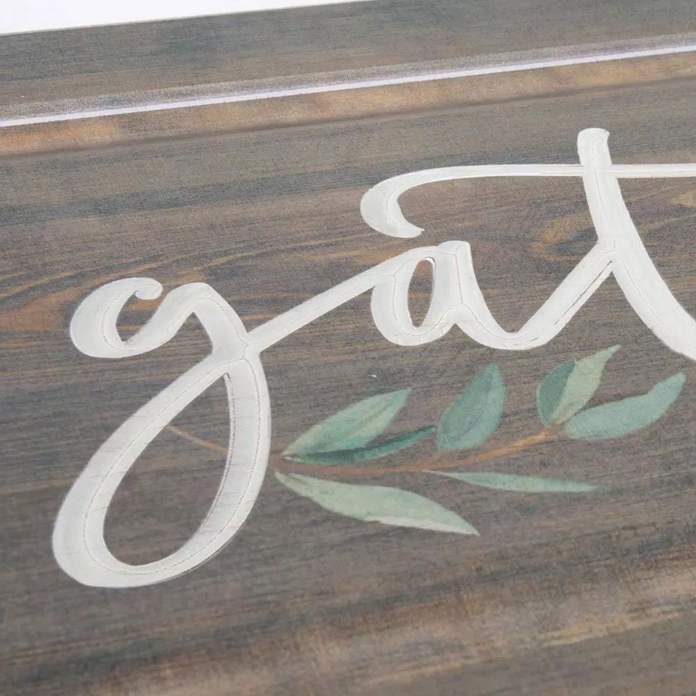 With symmetrical lines, curves and carving, this piece makes for a dramatic presentation. After receiving a coat of paint this item is carved with an inspirational sentiment and comes ready to hang. Use as a centerpiece on a large wall in a living room, dining room or kitchen and surround with additional pieces or florals to make a statement.
