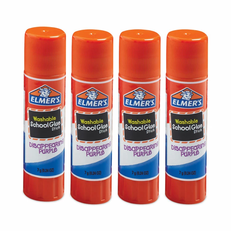 Elmer’s Washable School Glue Sticks, 0.24 Oz, Applies Purple, Dries Clear, 4/Pack