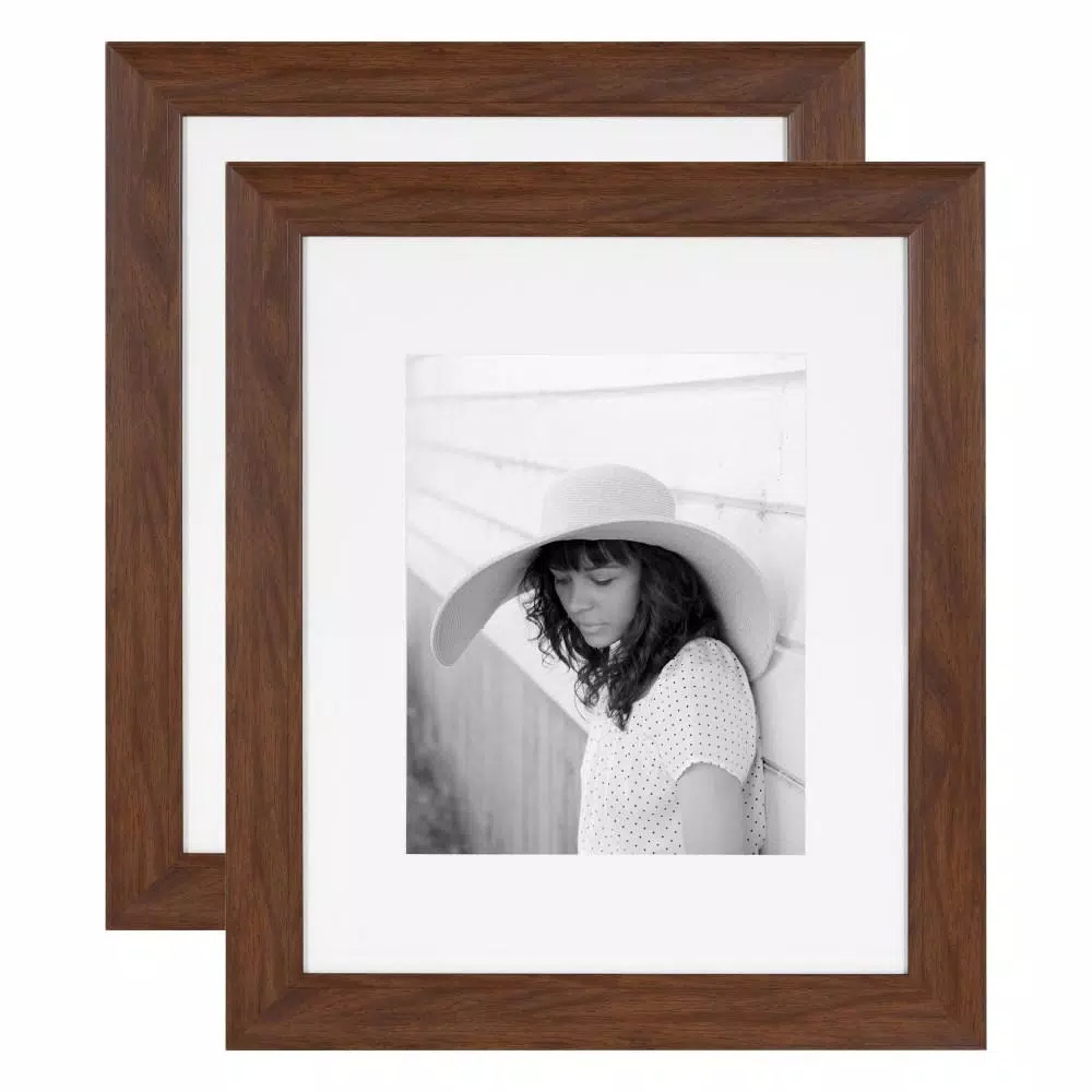 Indulge your love of traditional decor with this farmhouse-inspired frame set from Kate and Laurel. This frame has a mid-century modern walnut brown finish for an antique-like yet transitional look to blend in seamlessly with all of your home decor. Mount this frame set in your living room, family room, dining room, entryway, bathroom, or bedroom. You can mount this two piece set together as a wall display or separately throughout your home. Thanks to sawtooth hangers, you can also choose to hang these frames portrait or landscape orientation. These frames are 23.5 in. tall x 19.5 in. wide, and can hold an 11 in. x 14 in. print with the included white mat or a 16 in. x 20 in. print without the mat.