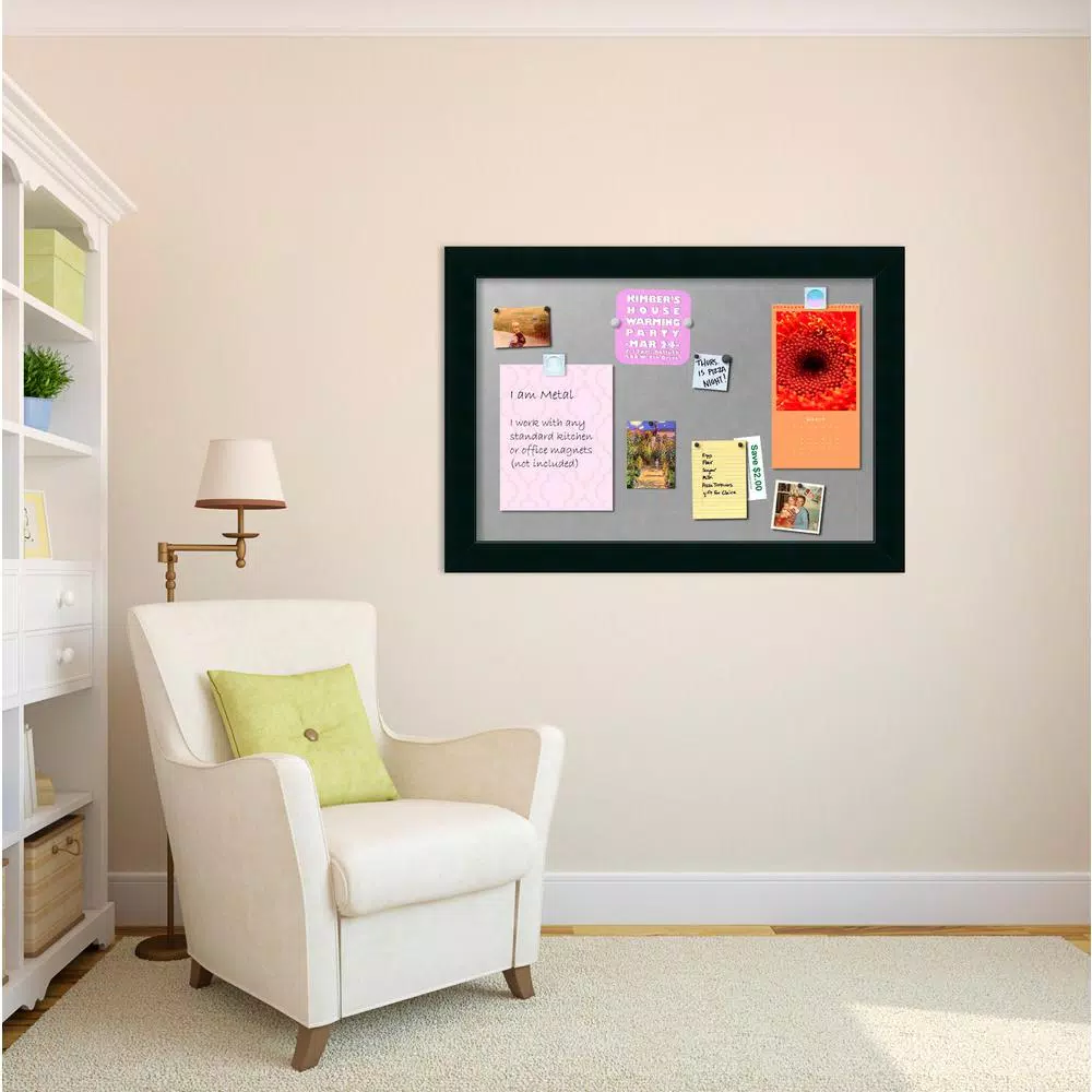 A beautifully framed magnetic board turns everyday notes and messages into an ever evolving work of art. It’s a great way to add function to your home without sacrificing style. This high quality, 100% real wood magnet message board features a contemporary black frame with a flat surface and a slightly recessed inner lip. The smooth, matte finish will provide a modern look to any room. This Amanti Art Decorative Magnetic Board is a home decor item you can be proud to showcase on your wall. Our craftsmen handmake this piece in a small custom art and frame shop in America’s heartland. We know that each decoration you choose for your home organization is a reflection of your style and taste. This magnetic board is one of many colors and sizes that Amanti Art offers. If it’s not a perfect fit, please check out our other magnet boards on homedepot.com. Choose from casual, traditional, modern, contemporary, country rustic or shabby chic styles. All pieces have durable wires already afixed to the back for easy hanging and installation in either direction. We hope you’re pleased with your Amanti Art purchase.