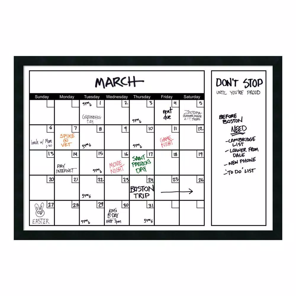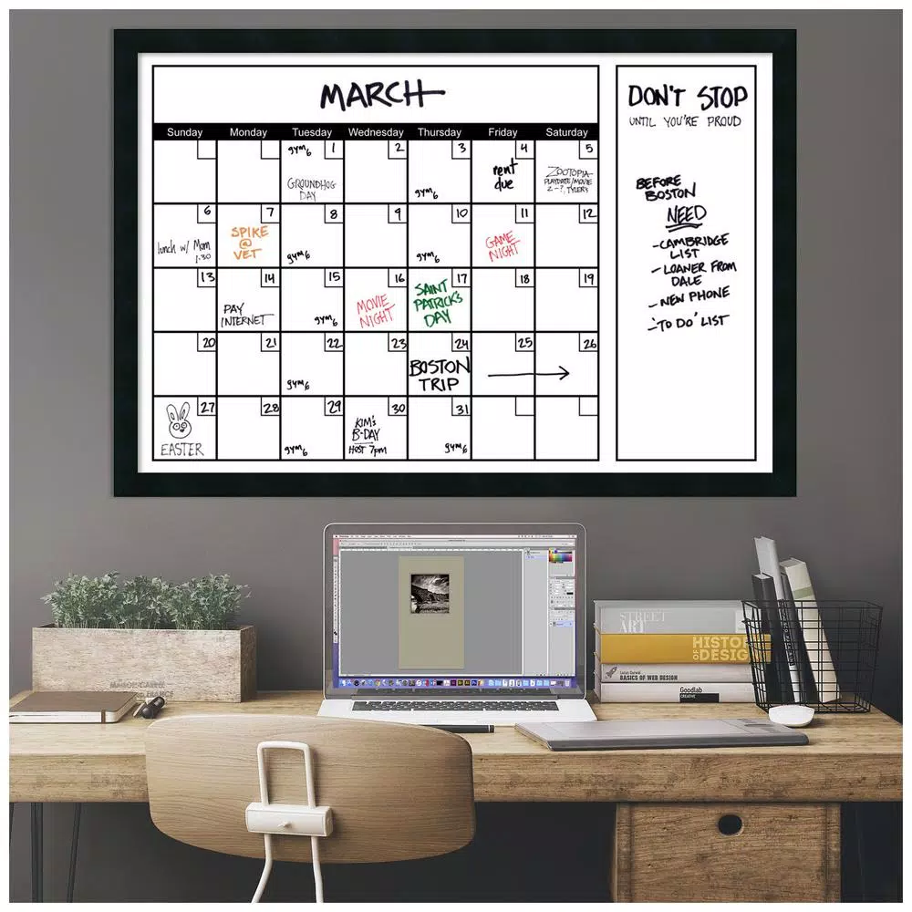 Get Organized Today. The Dry-Erase Calendar features a blank calendar format which you can fill in for any month of the year with extra fields you can use for notes, lists and doodles. This Amanti Art Decorative Dry Erase Board is a home decor item you can be proud to showcase on your wall.Our craftsmen handmake this piece in a small custom art and frame shop in America’s heartland.We know that each decoration you choose for your home organization is a reflection of your style and taste.This dry erase board comes framed in a variety of colors and sizes that you can select.Choose from casual, traditional, modern, contemporary, country rustic or shabby chic styles.All pieces have durable wires already afixed to the back for easy hanging and installation.We hope you’re pleased with your Amanti Art purchase.