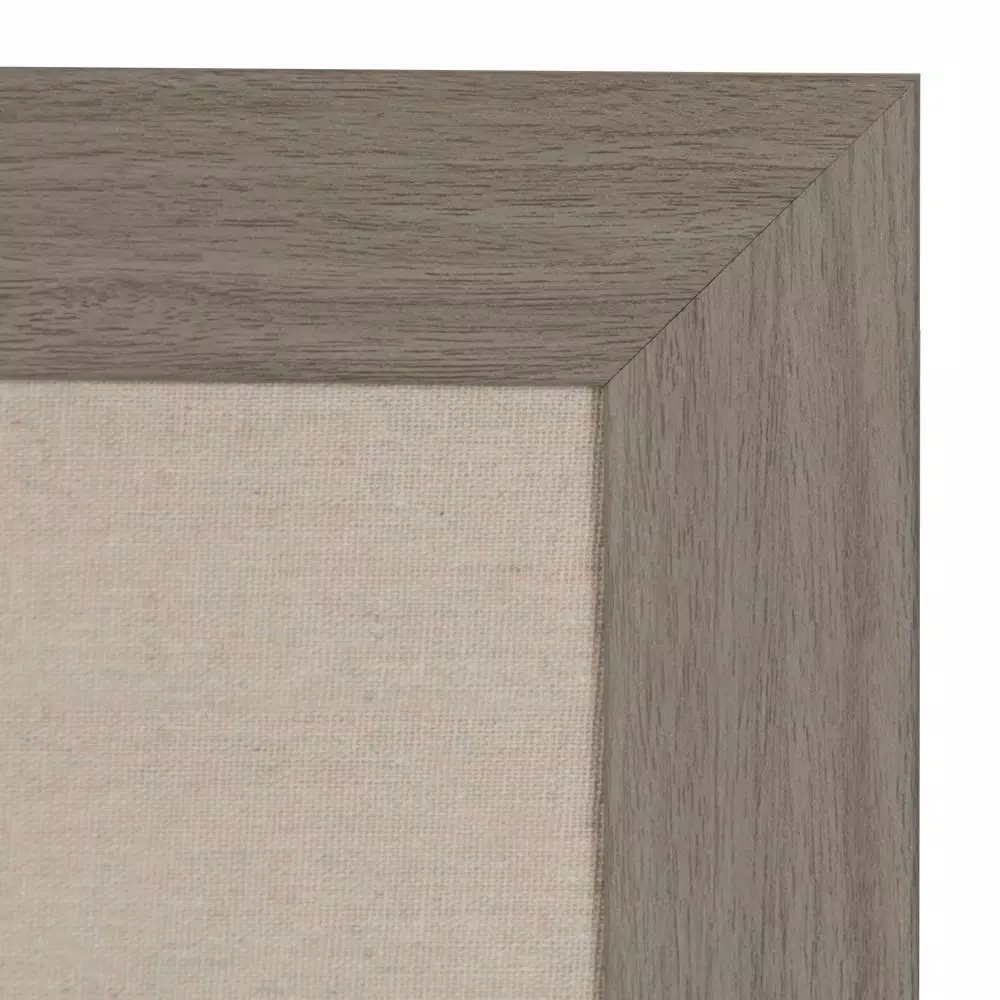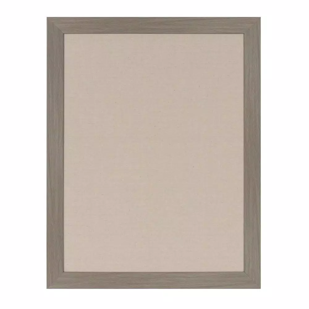 Organize your home or office with this decorative and functional framed linen fabric pinboard. This decorative wall mounted memo board has a soft linen fabric padded pinboard. Metal d-ring hangers are already attached to the back of the frame for either horizontal or vertical display to fit your needs. The outer display dimensions are 23 inches by 29 inches by 1 inch deep. The fabric pinboard measures 20 inches by 26 inches. Use this framed bulletin board for maximum organization in your entry way, kitchen, or home office.