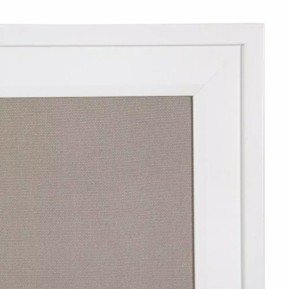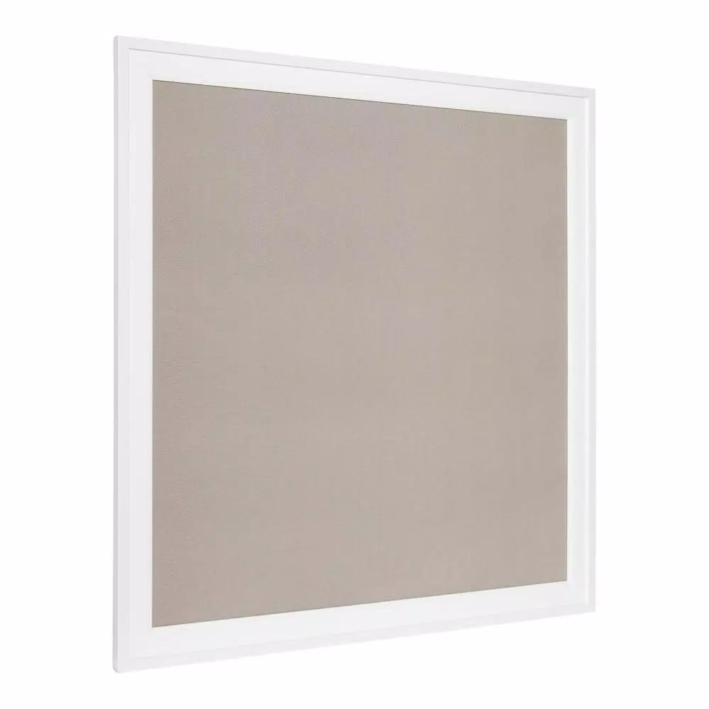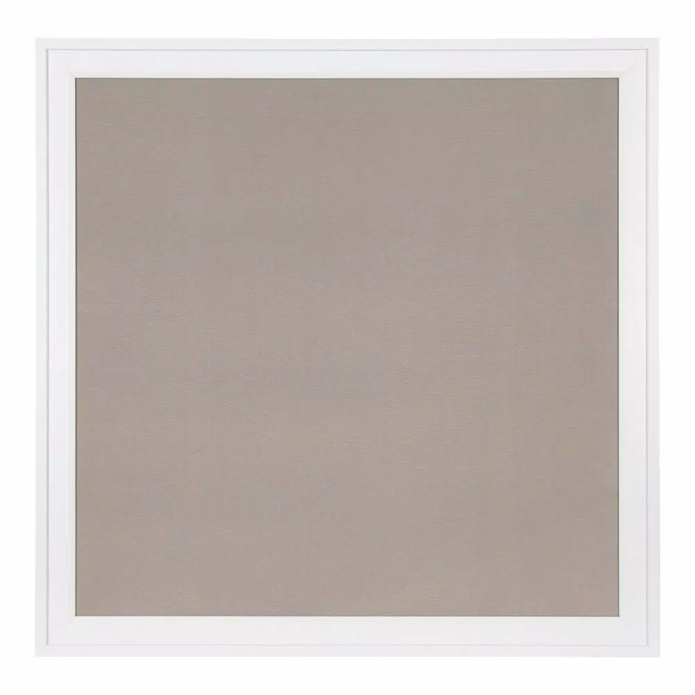 Organize your home or office with this decorative and functional framed linen fabric pinboard. This decorative wall mounted memo board has a gray linen fabric padded pinboard. Using your own selection of pushpins, post reminders, photos, or important memos in plain sight. Metal d-ring hangers are already attached to the back of the frame for either horizontal or vertical display to fit your needs. The outer display dimensions are 31.5 inches by 31.5 inches. The fabric pinboard measures 28 inches square. Use this framed bulletin board for maximum organization in your entryway, kitchen, or home office.