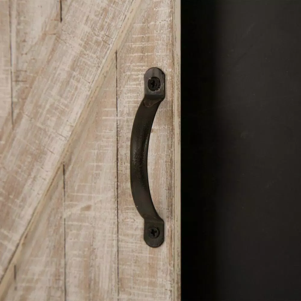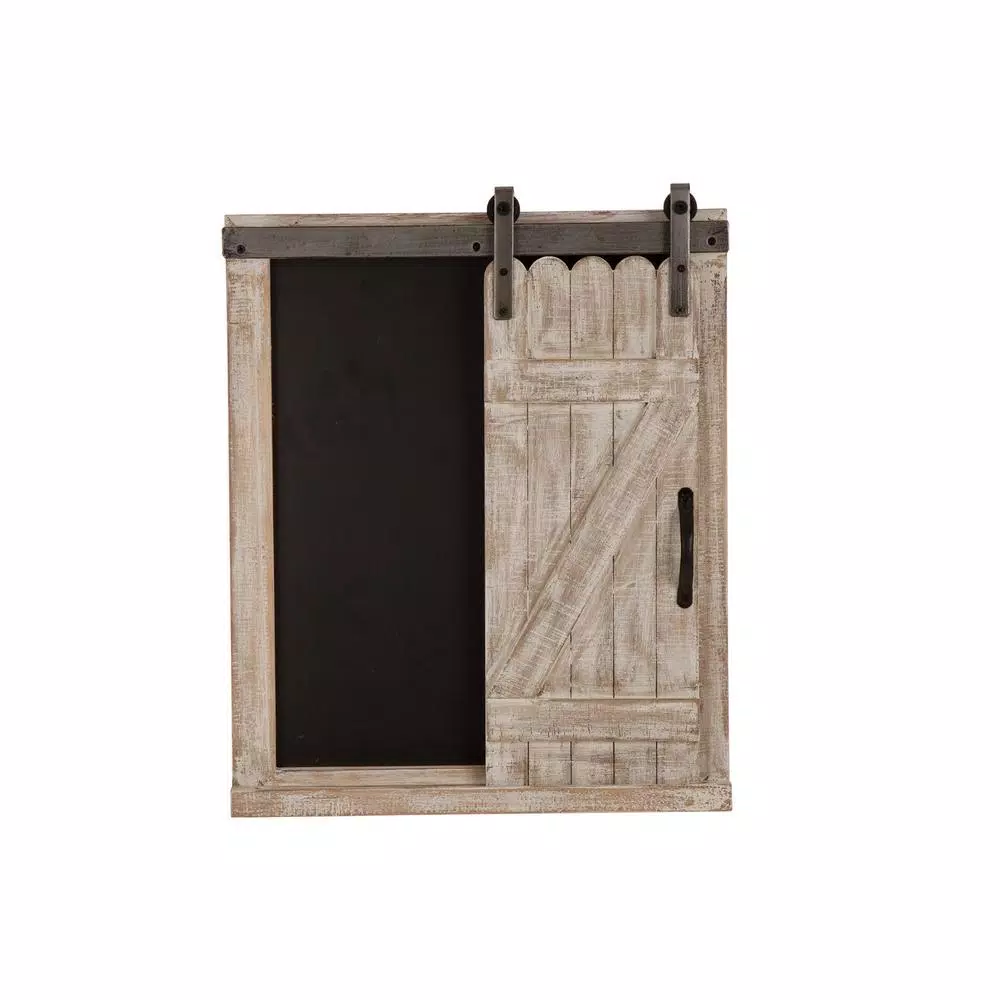 This farmhouse wooden chalkbaord barn door decor is crafted from wood and metal. The board’s country-chic vibe will be just as stunning in a kitchen as it will in other places of your home, even in the office. Write quick notes, important reminders, grocery lists, dinner menus, and more on this charming chalkboard. You can veil and unveil the chalkboard by sliding the barn door on its slot.