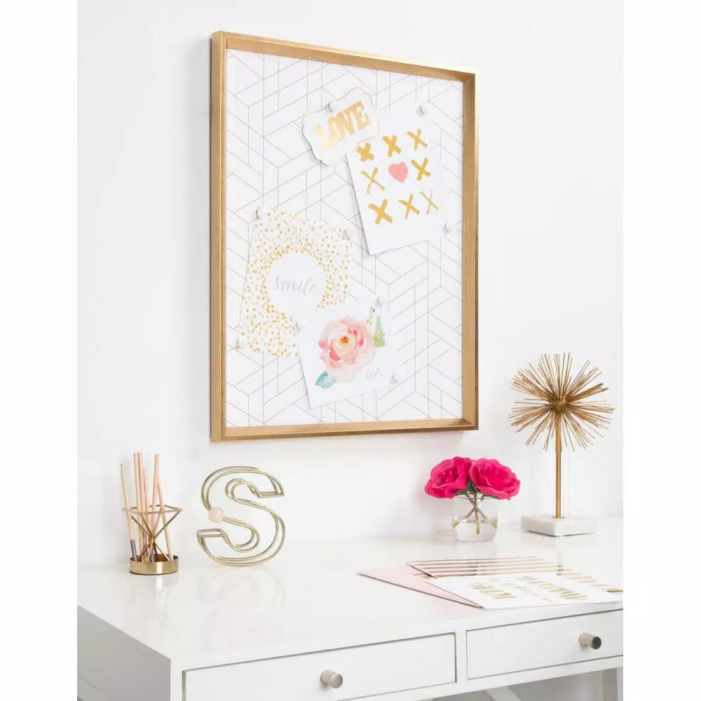 - A stylish wall displays that doubles as a magnetic vision board framed in a sophisticated gold frame for home or office organization
