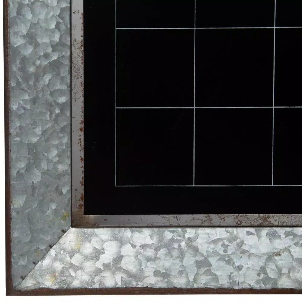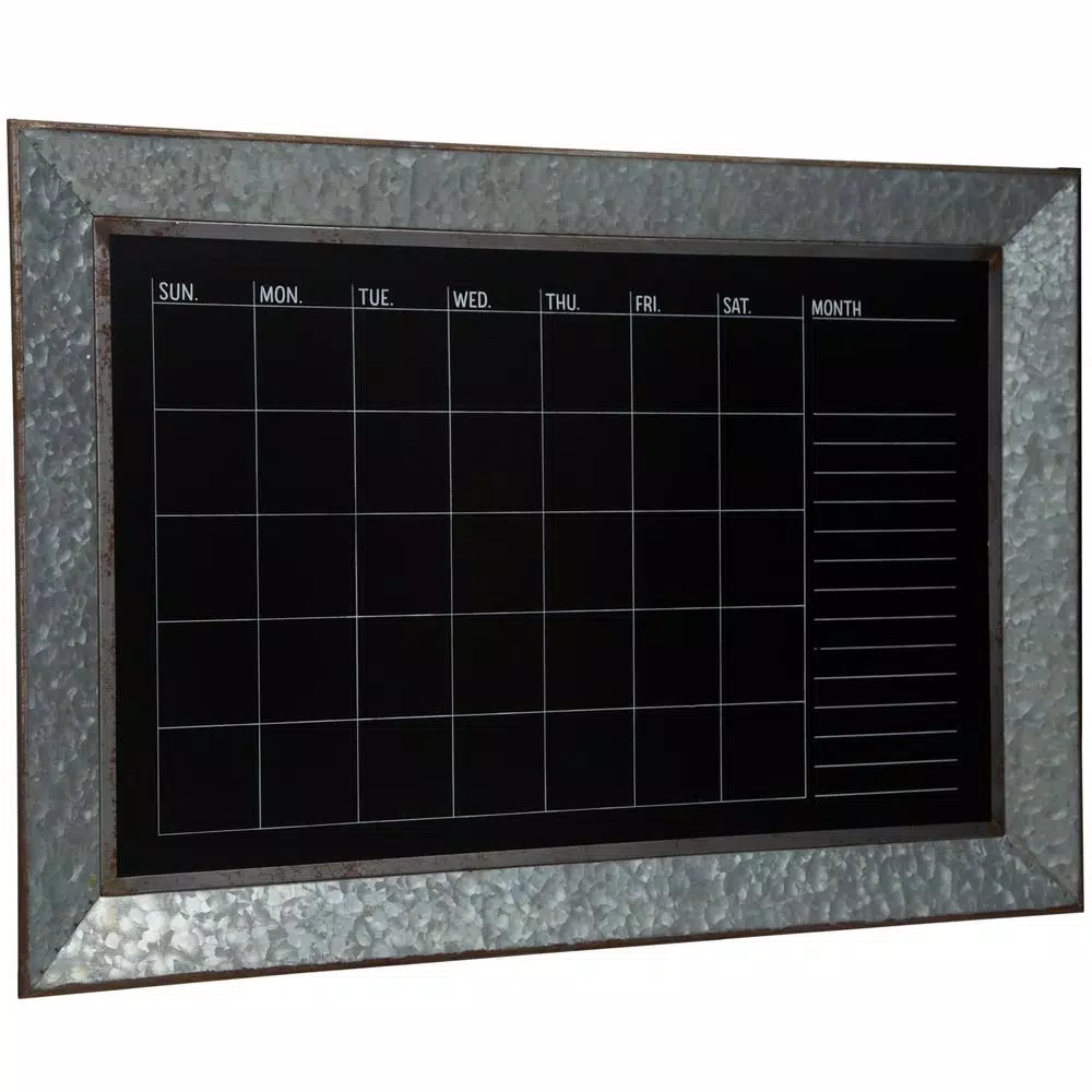 Keep the whole family organized in style with the Rustic Galvanized Metal Framed Wall Mount Chalkboard Calendar. This wall mounted blackboard features a monthly calendar to plan events, remember important dates and keep track of everyone’s schedule. It’s distressed 3.25 in. galvanized metal frame also makes it a rustic wall decor piece that adds charm to any space. The chalkboard finish easily wipes clean with a damp cloth and it hangs securely to any wall surface with two metal hangers on the back. This wall calendar is perfect for use in the entryway, home office, or kitchen. Use it to post all of your important appointments, birthdays and shopping lists while also adding a farmhouse modern element to your decor.
