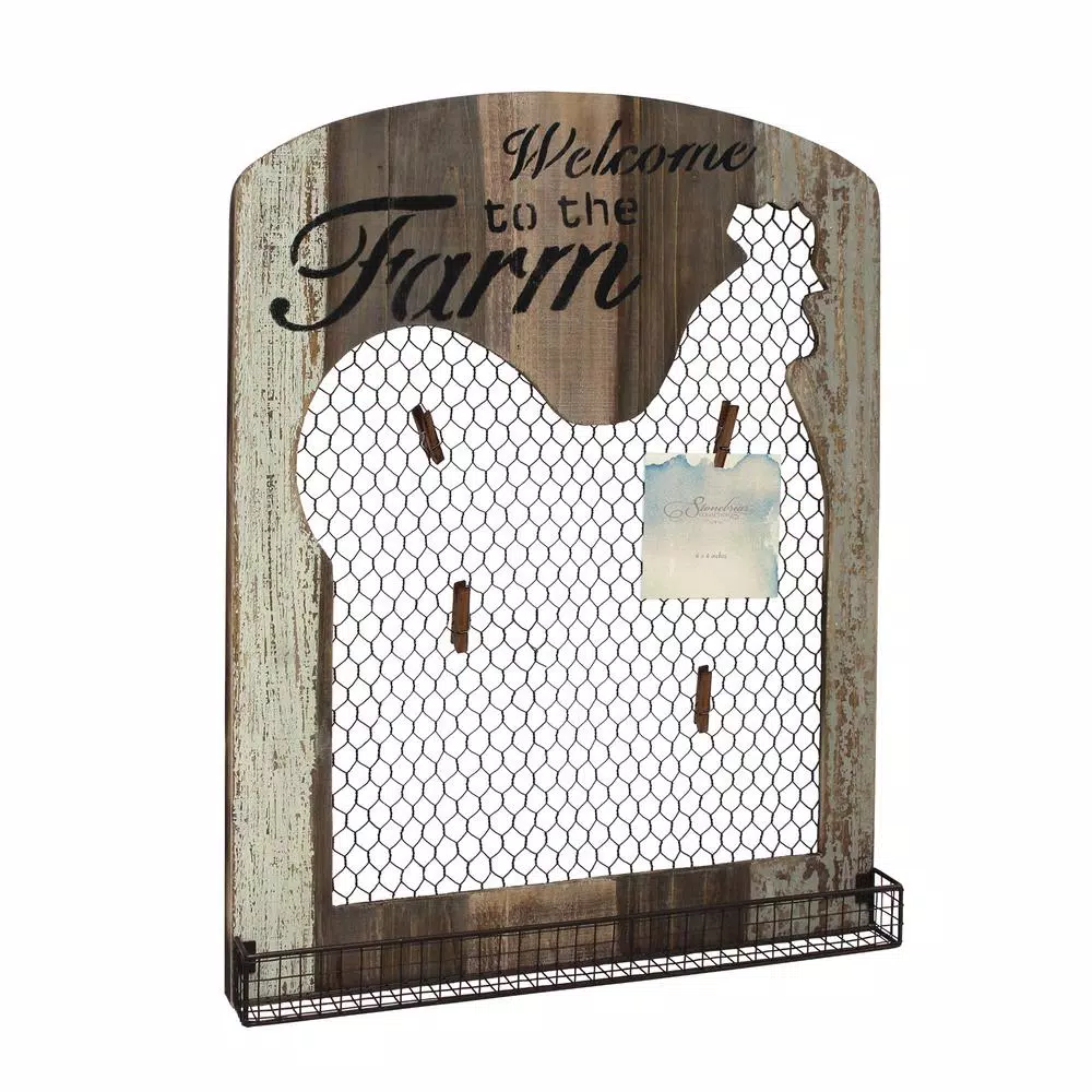 - Rooster decor with chicken wire and 4 closepins for hanging