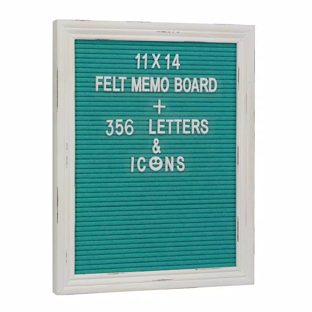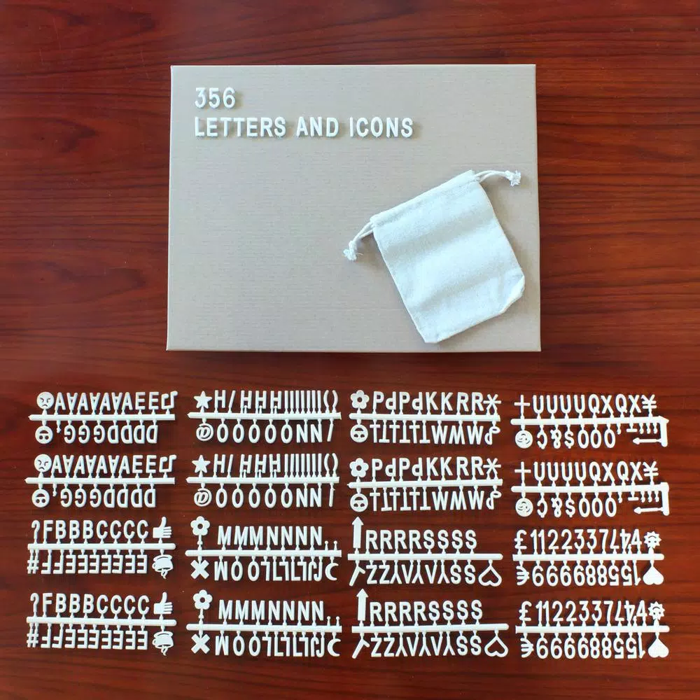 - Changeable letter felt memo board kit includes 356 white plastic letters, numbers and emojis