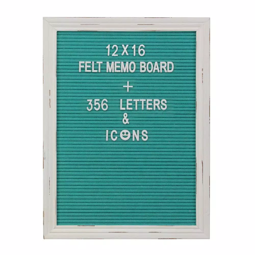 Leave special messages and inspirational notes for your friends and family with Stonebriar’s worn white wooden changeable letter felt memo board. Message board features a worn white painted wood frame with decorative gray felt. Memo board kit includes 356 white plastic letters, numbers and emojis. Kit also comes with a cloth storage bag to keep your changeable letters safe and organized. Memo board comes with an attached sawtooth hanger and can be easily installed right out of the box.