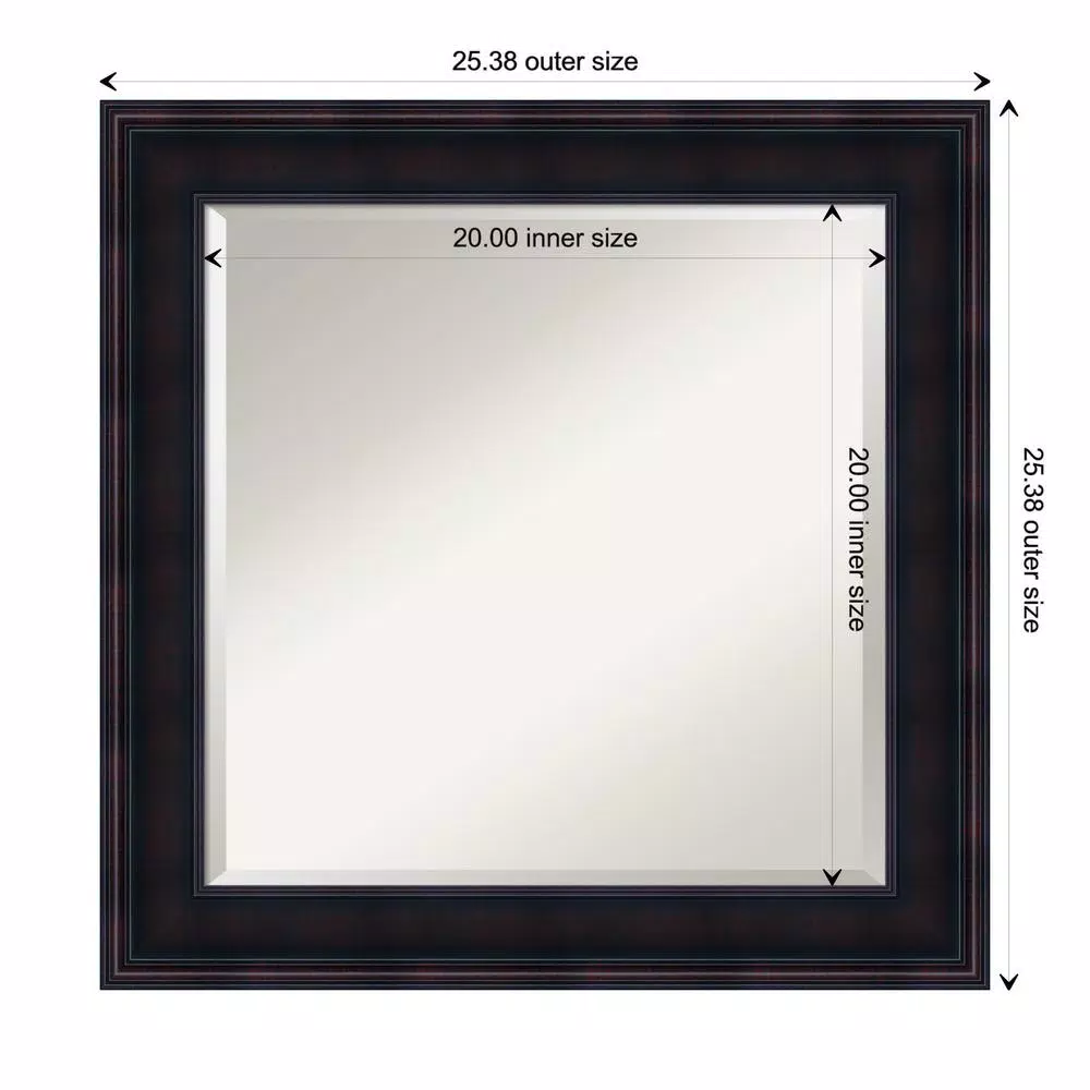 - Mirror dimensions: 20 in. x 20 in., outside dimensions: 25.38 in. x 25.38 in.