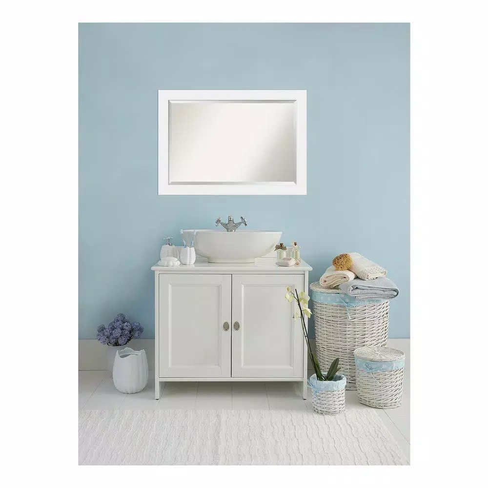 Give your bathroom the final change with this framed wall mirror sized to fit above a standard bathroom sink. The mirror features a contemporary white frame with a flat surface and a slightly recessed inner lip. The smooth, matte finish will provide a modern look to any room. We know that each decoration you choose for your home, be it for your living room, foyer, kitchen, bedroom, bathroom or other space, is a reflection of your style and taste. This mirror is one of many colors and sizes that Amanti Art offers. If it is not a perfect fit, please check out our other mirrors on Homedepot.com. Choose from casual, traditional, modern, contemporary, country rustic or shabby chic styles.