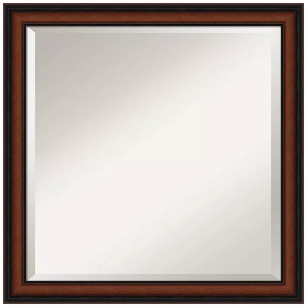 Give your bathroom the finishing touch with this framed wall mirror sized to fit above a standard bathroom sink. The mirror features an angled 2 5/ 8 in. wide frame with a slightly lifted outer ridge that slopes gracefully to the inner edge. The middle of this traditional frame features a rich walnut color with fine grain lines running throughout it; a darker walnut shade covers the curves along the outer and inner edges. We know that each decoration you choose for your home, be it for your living room, foyer, kitchen, bedroom, bathroom or other space, is a reflection of your style and taste. This mirror is one of many colors and sizes that Amanti Art offers. If it’s not a perfect fit, please check out our other mirrors on Homedepot.com. Choose from casual, traditional, modern, contemporary, country rustic or shabby chic styles.