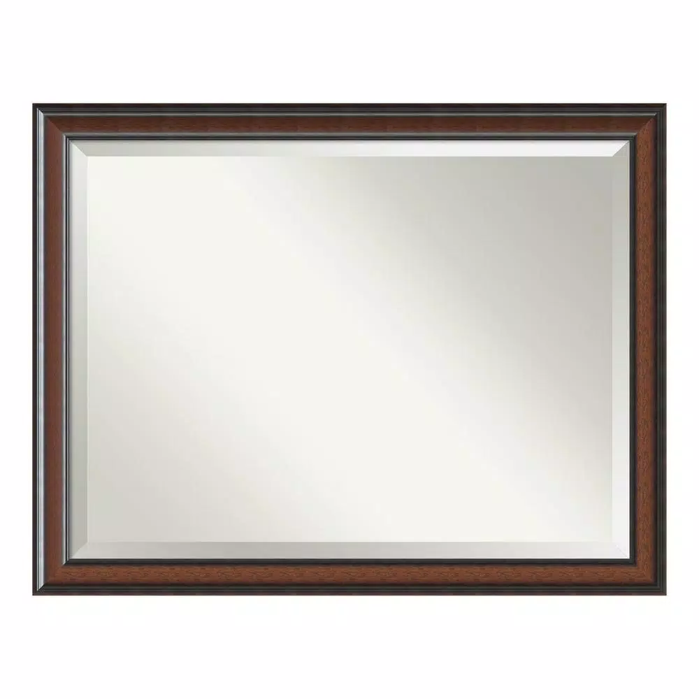 Give your bathroom the final change with this framed wall mirror sized to fit above a standard bathroom sink. The mirror features an angled 2-5/8 in. wide frame with a slightly lifted outer ridge that slopes gracefully to the inner edge. The middle of this traditional frame features a rich walnut color with fine grain lines running throughout it; a darker walnut shade covers the curves along the outer and inner edges. We know that each decoration you choose for your home, be it for your living room, foyer, kitchen, bedroom, bathroom or other space, is a reflection of your style and taste. This mirror is one of many colors and sizes that Amanti Art offers. If it is not a perfect fit, please check out our other mirrors on Homedepot.com. Choose from casual, traditional, modern, contemporary, country rustic or shabby chic styles.