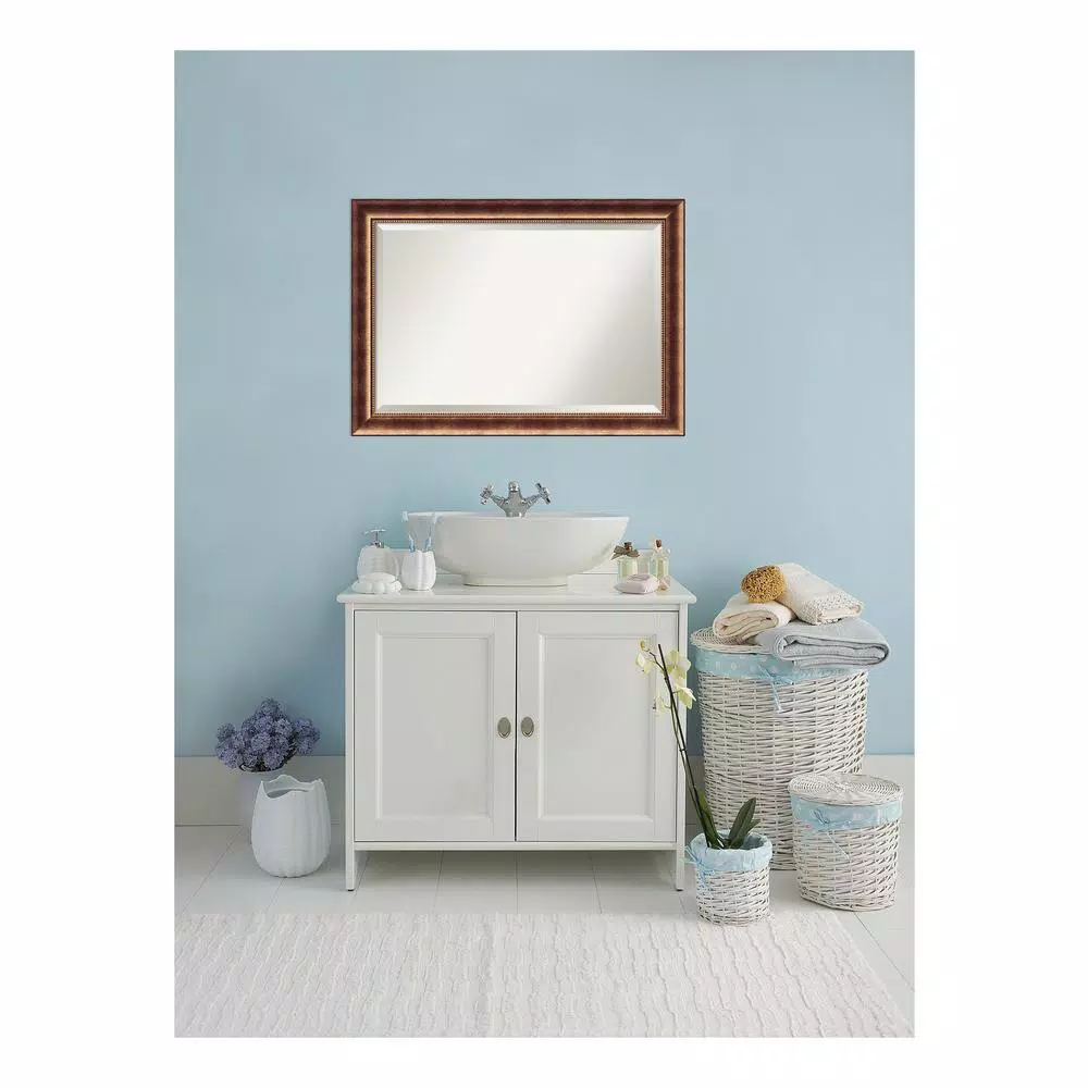 Give your bathroom the final change with this framed wall mirror sized to fit above a standard bathroom sink. The mirror features a contemporary 3 in. wide burnished bronze frame with a slightly lifted outer ridge and a wide face that curves to an inner golden beaded edge. We know that each decoration you choose for your home, be it for your living room, foyer, kitchen, bedroom, bathroom or other space, is a reflection of your style and taste. This mirror is one of many colors and sizes that Amanti Art offers. If it is not a perfect fit, please check out our other mirrors on Homedepot.com. Choose from casual, traditional, modern, contemporary, country rustic or shabby chic styles.