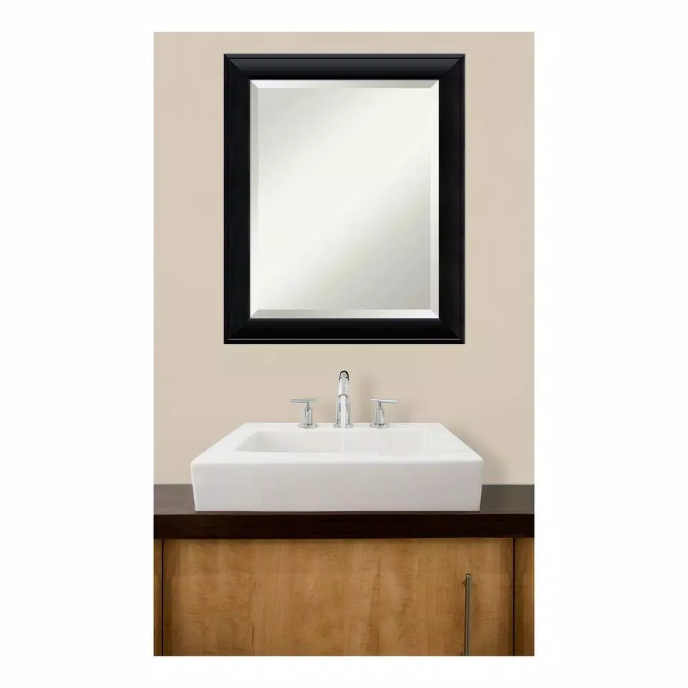 Give your bathroom the final change with this framed wall mirror sized to fit above a standard bathroom sink. The mirror featuresa modern 2 in. wide black frame with a slightly rounded profile and a raised edge. The frame has a satin finish that will add a contemporary touch to any room. We know that each decoration you choose for your home, be it for your living room, foyer, kitchen, bedroom, bathroom or other space, is a reflection of your style and taste. This mirror is one of many colors and sizes that Amanti Art offers. If it is not a perfect fit, please check out our other mirrors on Homedepot.com. Choose from casual, traditional, modern, contemporary, country rustic or shabby chic styles.