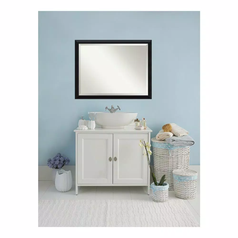 Give your bathroom the final change with this framed wall mirror sized to fit above a standard bathroom sink. The mirror featuresa modern 2 in. wide black frame with a slightly rounded profile and a raised edge. The frame has a satin finish that will add a contemporary touch to any room. We know that each decoration you choose for your home, be it for your living room, foyer, kitchen, bedroom, bathroom or other space, is a reflection of your style and taste. This mirror is one of many colors and sizes that Amanti Art offers. If it is not a perfect fit, please check out our other mirrors on Homedepot.com. Choose from casual, traditional, modern, contemporary, country rustic or shabby chic styles.