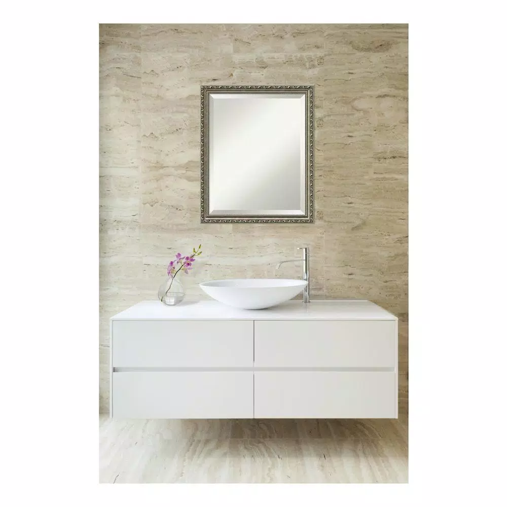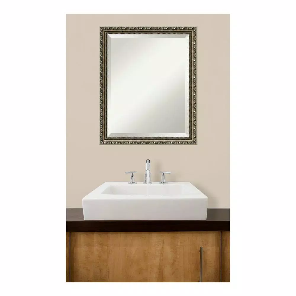 Give your bathroom the finishing touch with this framed wall mirror sized to fit above a standard bathroom sink. The mirror features an ornate 1-1/4 in. wide warm silver frame with dark pewter patina. This classic frame is accented by a raised leaf pattern on the outer edge and fine beading on the inner. We know that each decoration you choose for your home, be it for your living room, foyer, kitchen, bedroom, bathroom or other space, is a reflection of your style and taste. This mirror is one of many colors and sizes that Amanti Art offers. If it’s not a perfect fit, please check out our other mirrors on Homedepot.com. Choose from casual, traditional, modern, contemporary, country rustic or shabby chic styles.