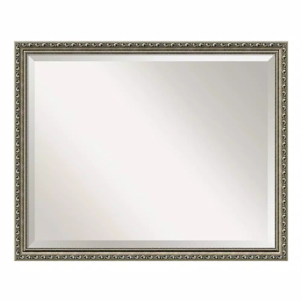 Give your bathroom the finishing touch with this framed wall mirror sized to fit above a standard bathroom sink. The outer dimensions of this mirror will work with a countertop up to 30 in. wide if hung vertically and up to 36 in. wide if hung horizontally. The traditional 1 1/3 in. frame has an ornate pattern with a warm silver finish, strongly accented by a dark pewter patina. It’s antiqued inner slope finishes with a fine beaded pattern on the edge. We know that each decoration you choose for your home, be it for your living room, foyer, kitchen, bedroom, bathroom or other space, is a reflection of your style and taste. This mirror is one of many colors and sizes that Amanti Art offers. If it’s not a perfect fit, please check out our other mirrors on Homedepot.com. Choose from casual, traditional, modern, contemporary, country rustic or shabby chic styles.