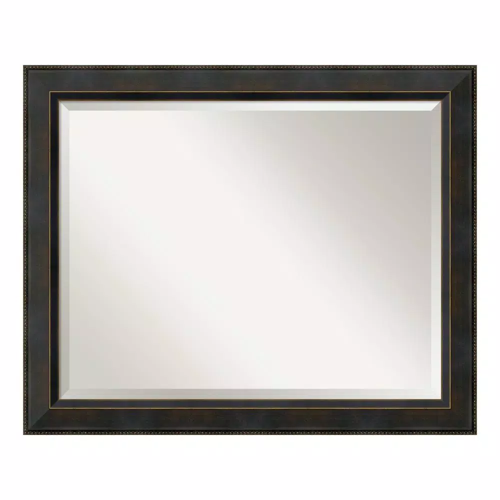 Give your bathroom the finishing touch with this framed wall mirror sized to fit above a standard bathroom sink. The outer dimensions of this mirror will work with a countertop up to 30 in. wide if hung vertically and up to 36 in. wide if hung horizontally. The striking 2 1/2 in. angled bronze frame has an espresso background with bronze gold veins and brushstrokes thoughout. A bright highlight on the tip of the angle slopes down to burnished bronze beading on the outer edge and another highlight on the inner edge. We know that each decoration you choose for your home, be it for your living room, foyer, kitchen, bedroom, bathroom or other space, is a reflection of your style and taste. This mirror is one of many colors and sizes that Amanti Art offers. If it’s not a perfect fit, please check out our other mirrors on Homedepot.com. Choose from casual, traditional, modern, contemporary, country rustic or shabby chic styles.