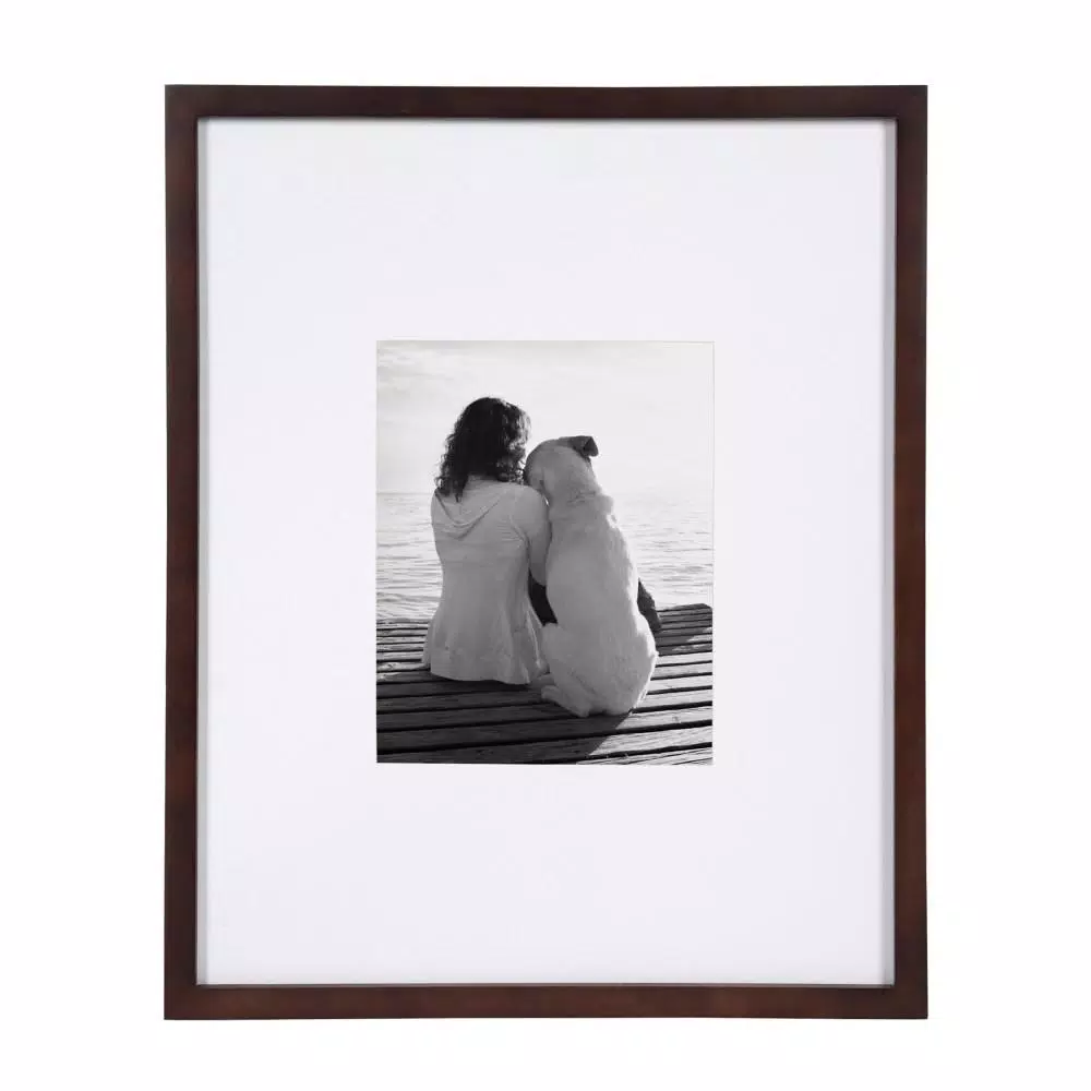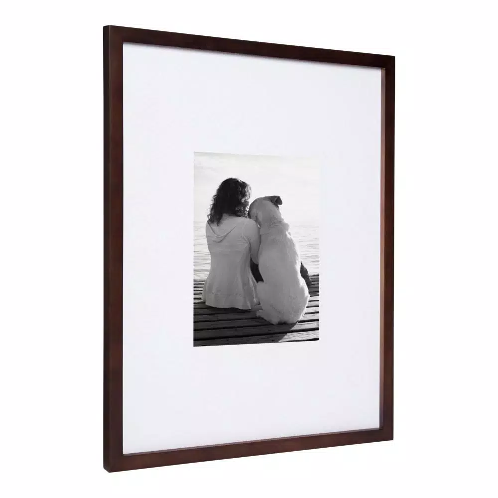 - Capture your favorite moments and tell a story with a DesignOvation Gallery Frame set. A gorgeous collection of quality wooden frames in a modern walnut brown finish will create a stylish statement that allows you to commemorate and customize your special occasions, making them a part of your day to day life. The frames each hold an 8×10 photo with the included white mat or a 16×20 without the mat. The outside frame dimensions are 17×21 inches.