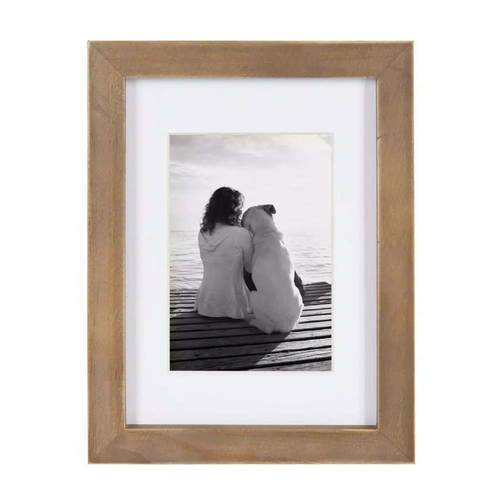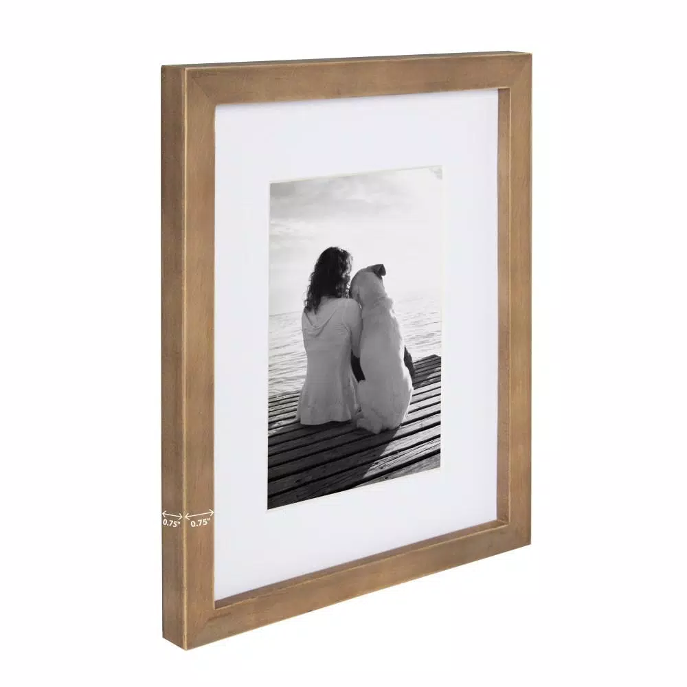 Take it from your favorite home-decor magazine – a cluster of smartly displayed photos all presented in stylish wooden frames is the trend that is becoming a classic. What was once a cluttered arrangement gathering dust becomes the main focal point of any room. Capture your cherished photos of family, friends and special occasions with the DesignOvation Gallery Wood Frame Set. The contemporary look of this rustic finish frame set will add a classic feel. With this frame collection, you can personalize your display of photos to suit your space and style using any customizable layout that you design. The frames can hang portrait or landscape style and can be arranged on a tabletop with the ready-to-use easel on the back or mounted securely on a wall with the metal sawtooth wall hangers that come attached to the back. The crisp white mat creates an additional decoration and brings the viewers focus on what matters – your photos. It’s a simple way to create drama or fun in your home or office. The outside frame dimensions are 6 in. x 8 in. Each frame can fit a 3.5 in. x 5 in. photo with the optional mat or a 5 in. x 7 in. photo without the included mat.