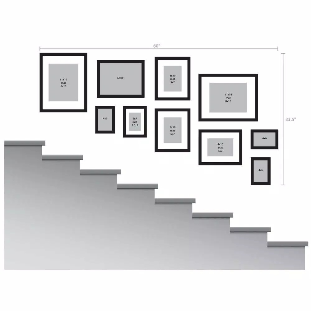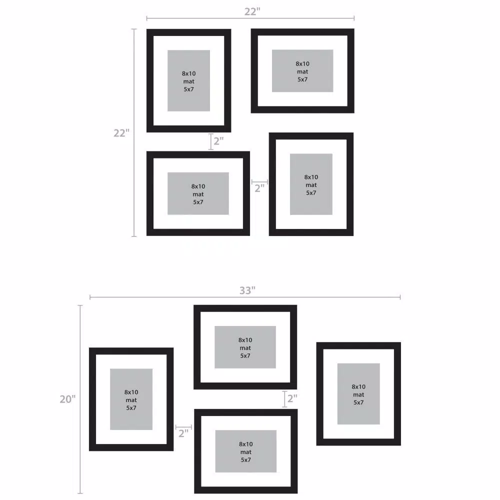 - Customizable solutions – capture your favorite moments and tell a story with a DesignOvation Gallery Frame set, a gorgeous collection of quality wooden frames in a modern black finish will create a stylish statement that allows you to commemorate and customize your special occasions, making them a part of your day to day life, the frames each hold a 5 in. x 7 in. photo with the included white mat or an 8 in. x 10 in. without the mat, the outer frame dimensions are 9 in. x 11 in.