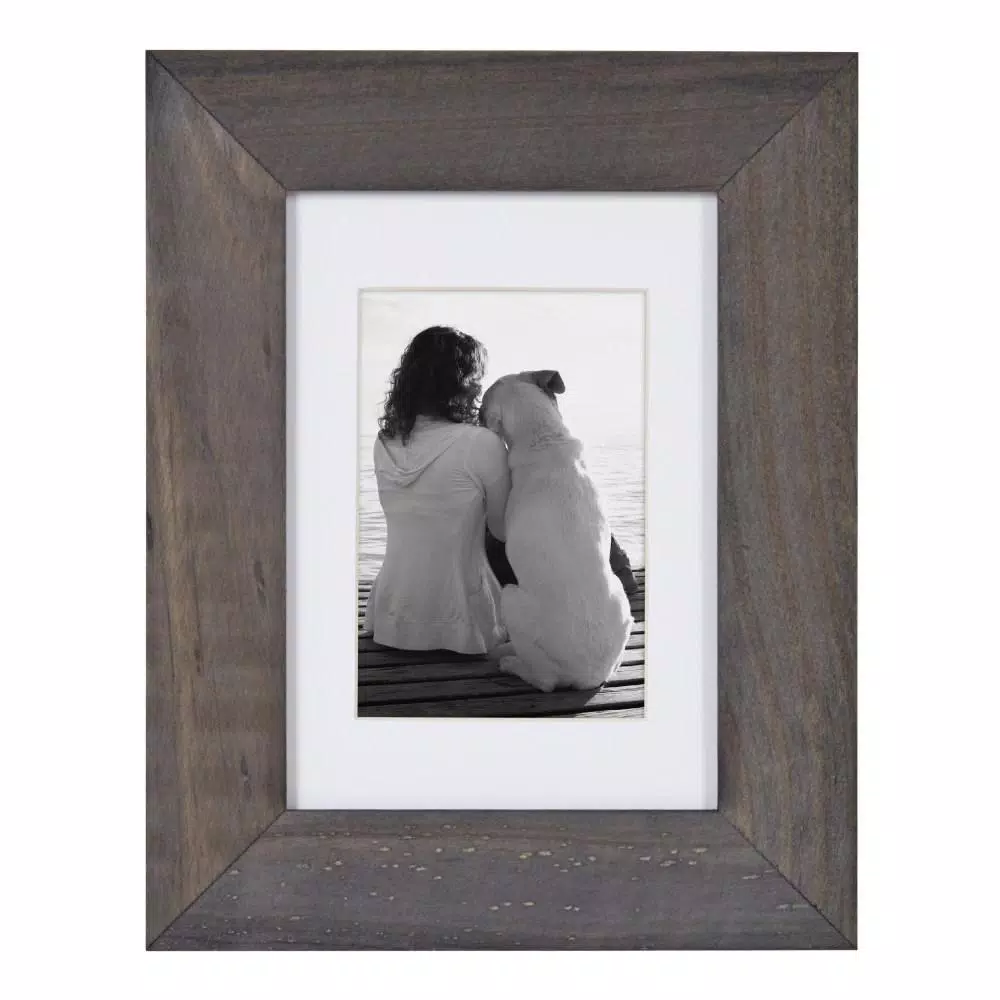 Turn your home decor into an exclusive museum quality wall gallery. This classic frame has a beautiful rustic finish with sturdy wood construction. Each frame includes an optional crisp white mat that will highlight your art prints or own treasured photos beautifully. Combine with other frames in the collection to create beautiful and contemporary art galleries on your own wall. The opening is 5 in. x 7 in. matted down to 3.5 in. x 5 in. The outside frame dimensions are 7.5 in. x 9.5 in. Comes in a pack of four.
