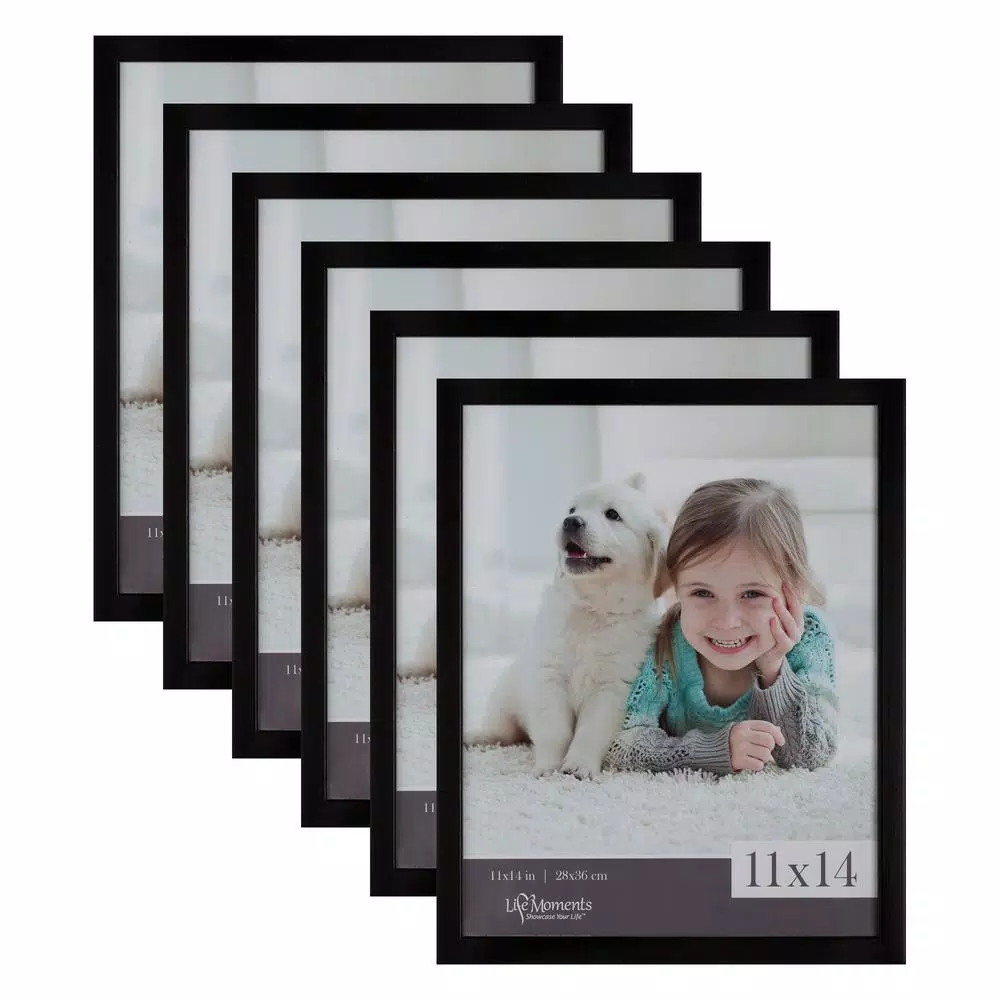 Display your most cherished memories with these Life Moments black wood frames – Set of 6. These frames feature a black wood finish. Each frame holds a 11 in. x 14 in. Picture. For tabletop display, either vertically or horizontally. They’re great for home or office decoration.