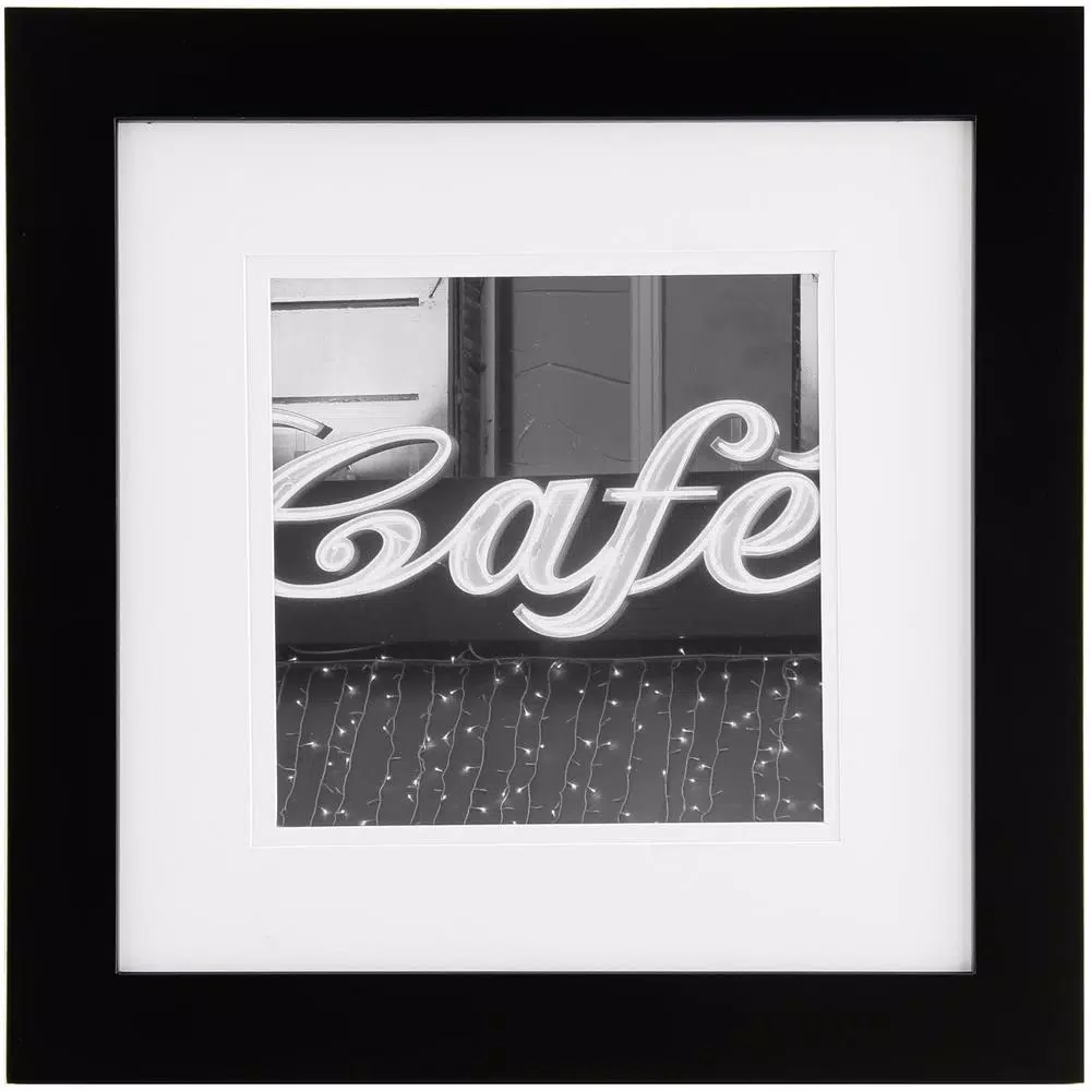 Display your photos or art in style. This frame features a sleek black finish and useable art that can be used as is or swapped out for a photo of your own. Display an 12 in.x 12 in. print, or a 8 in.x 8 in. with included white mat. It can easily be hung vertically or horizontally to give your photos an elegant look.