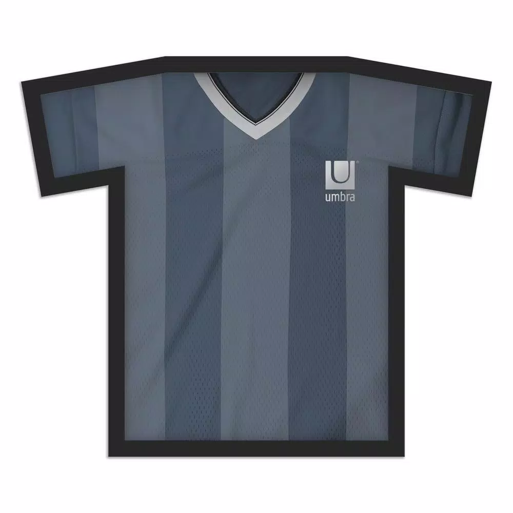 Add a personal touch to your decor and elevate your favorite jersey with this clever frame from Umbra. Introducing the Sports Shirt Frame by Umbra Sports Shirt is made to display hockey, baseball, football(NFL) and rugby jerseys and show off your home town pride. Since it’s shaped like a jersey, you can easily fold your sports shirt into the frame for a compact display that will keep your jersey looking pristine. Included is a folding guide allowing you to align your jersey perfectly in the frame. With this quick and easy to use solution, you don’t have to worry about your jersey sagging in a shadowbox or being unprotected outside a frame. Made with shatter-proof acrylic your jersey will be safe and dust-proof behind this wall display. This easy to hang frame has sawtooth hangers on the back and is easy to assemble. Simply fold your jersey on the built-in folding template and then place the jersey inside the frame. Details Sports Shirt holds men’s jerseys up to XXL and measures 36 in. x 33 in. x 1.5 in. (91.5 cm x 84- cm x 4- cm). The frame is black and the pane is clear acrylic. For a unique and practical alternative for displaying your favorite jerseys, order Sports Shirt frame today. About Umbra: A global product design company providing original, modern, casual and functional design for the home.