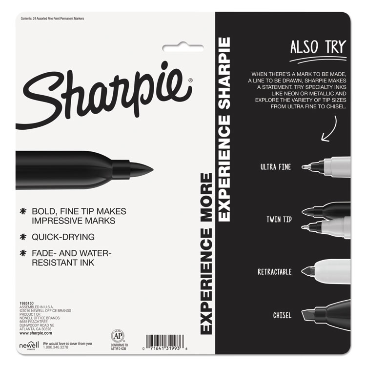 Bold to the max and permanent to the core, Sharpie Permanent Markers inspire you to transform ordinary surfaces into passionately creative statements. Made to write practically everywhere, vivid Sharpie markers eliminate dull and boring. The original permanent marker, Sharpie has iconic ink that dries quickly and resists both water and fading. While pale imitations wither away, Sharpie markers make creations that endure. Featuring a bold fine point built for jaw-dropping marks, Sharpie Permanent Markers ignite courageous self-expression.