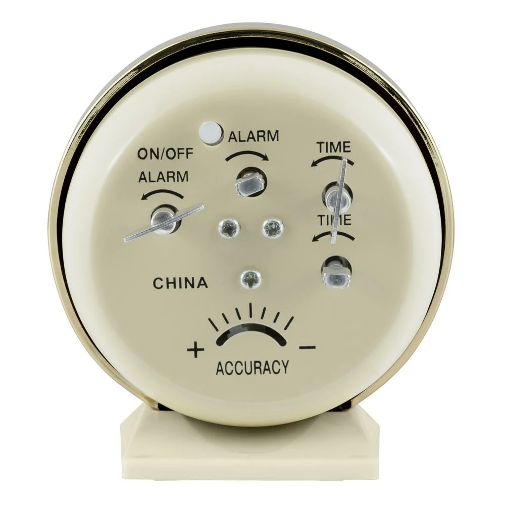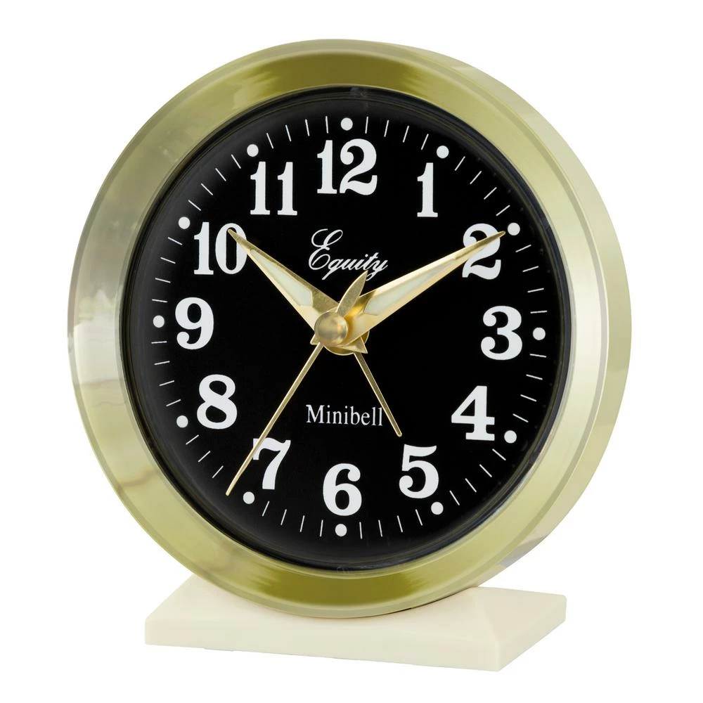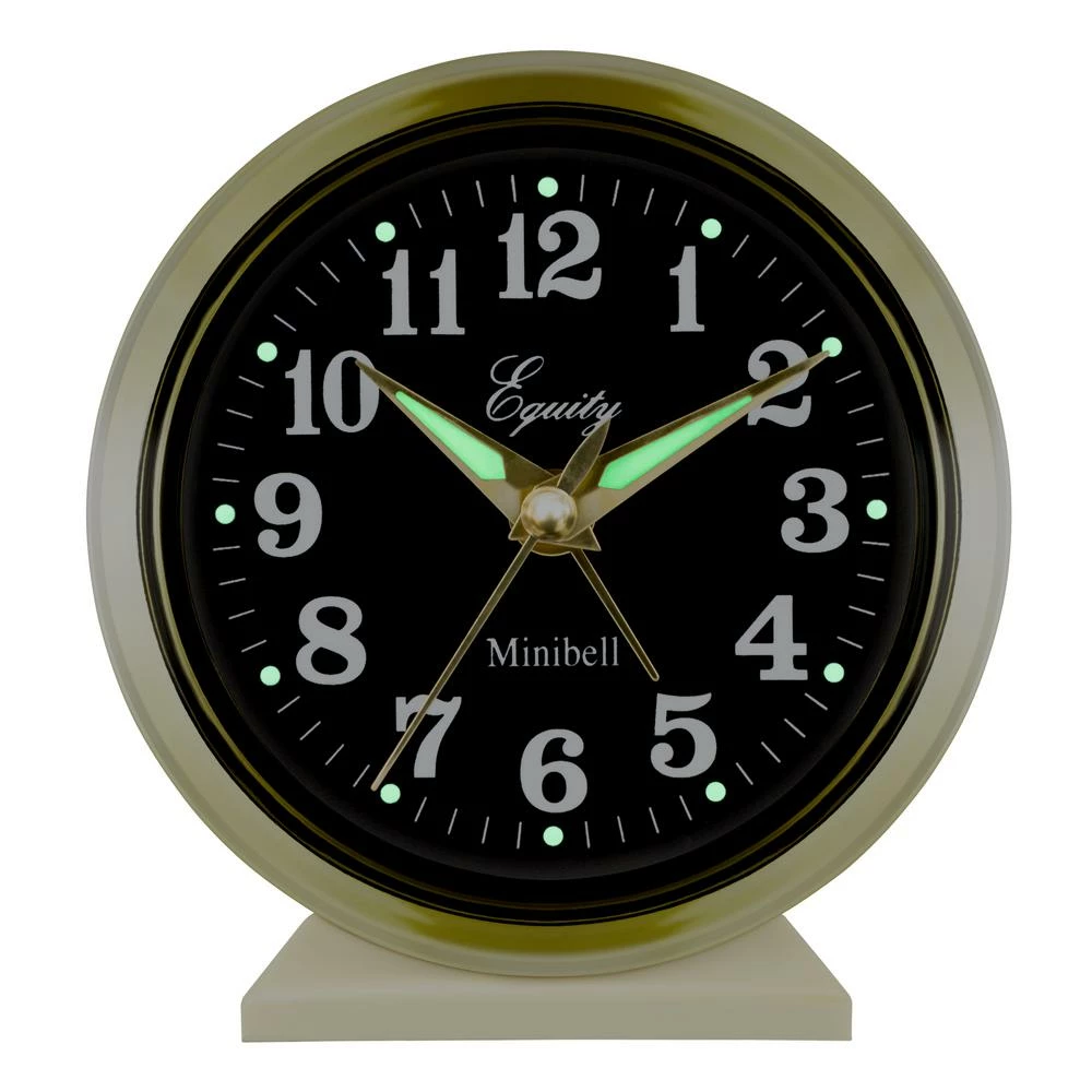 Nighttime viewing and extra loud wake up ring with this clock. Featuring bell alarm, luminated hands and no batteries needed. Key wound design clock and scratch resistant base.