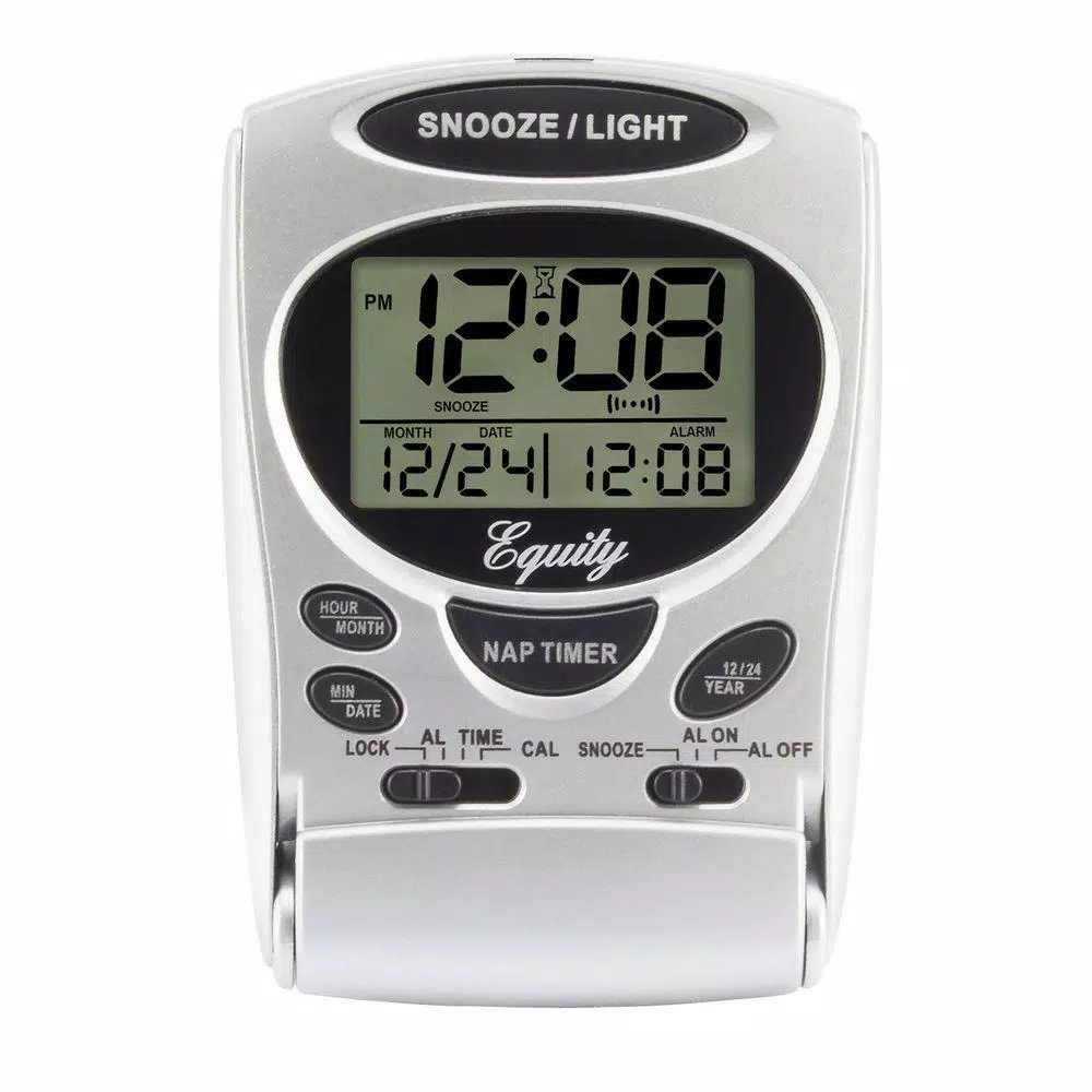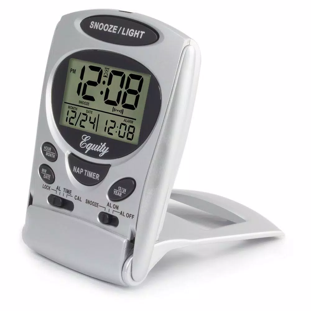On the go travel alarm is portable for a pocket. Bright blue backlight and features a nap timer. LCD also displays your calendar and alarm time. Battery (not included) operation.