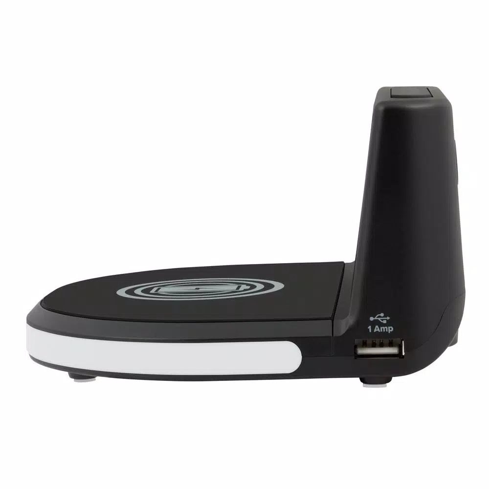 - Wireless charging for Qi enabled phone (5W silicone base with LED charging alignment indicator light