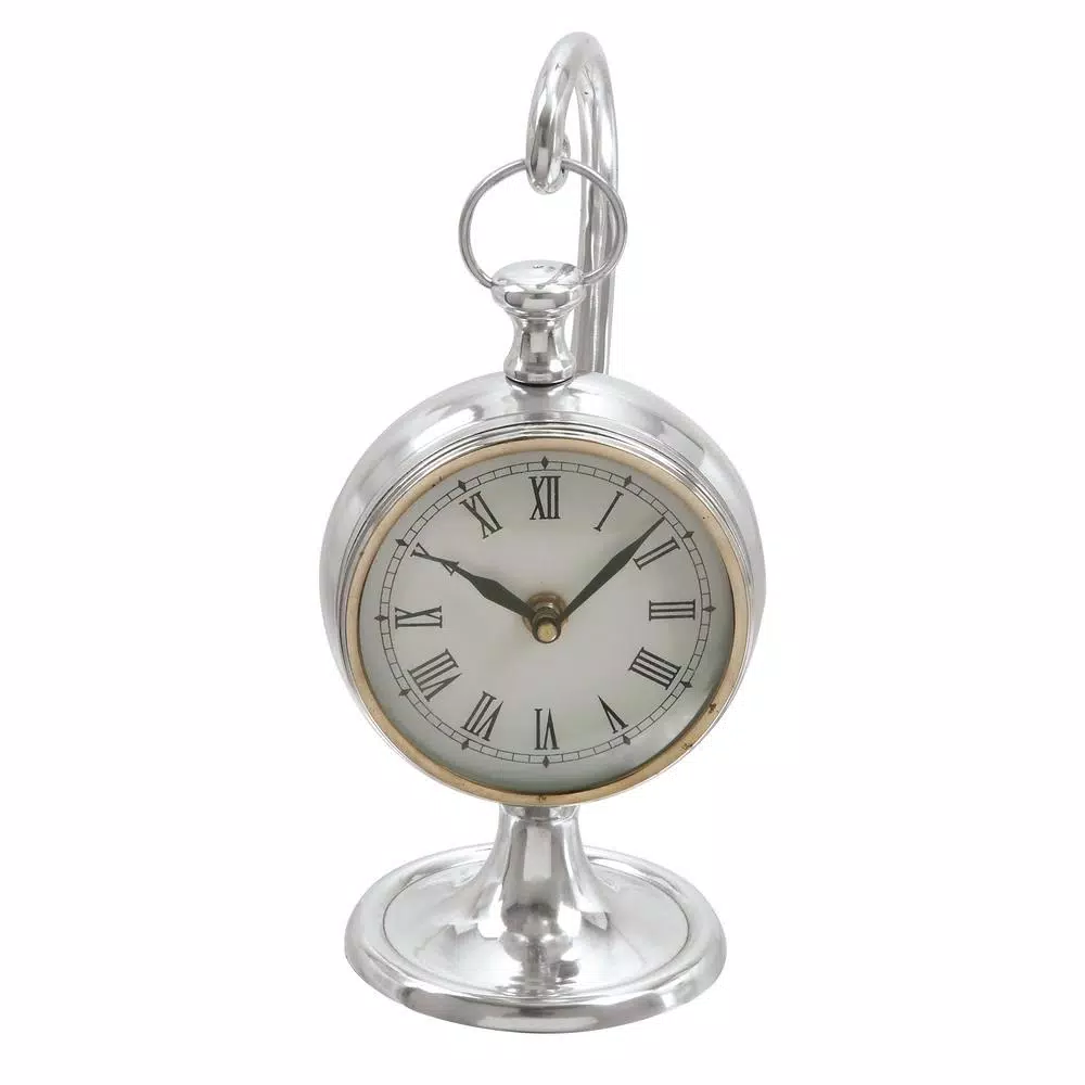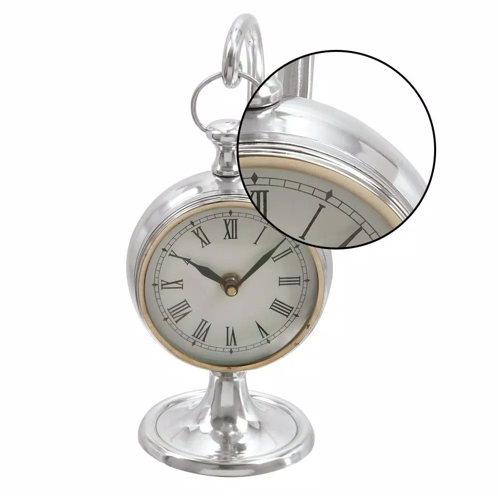 Let this beautiful table clock add a sophisticated charm to your table. It features a polished aluminum frame and a classic design perfect for traditional themed rooms. It also has a black and white clock face with Roman numeral markings that gives it an elegant touch.