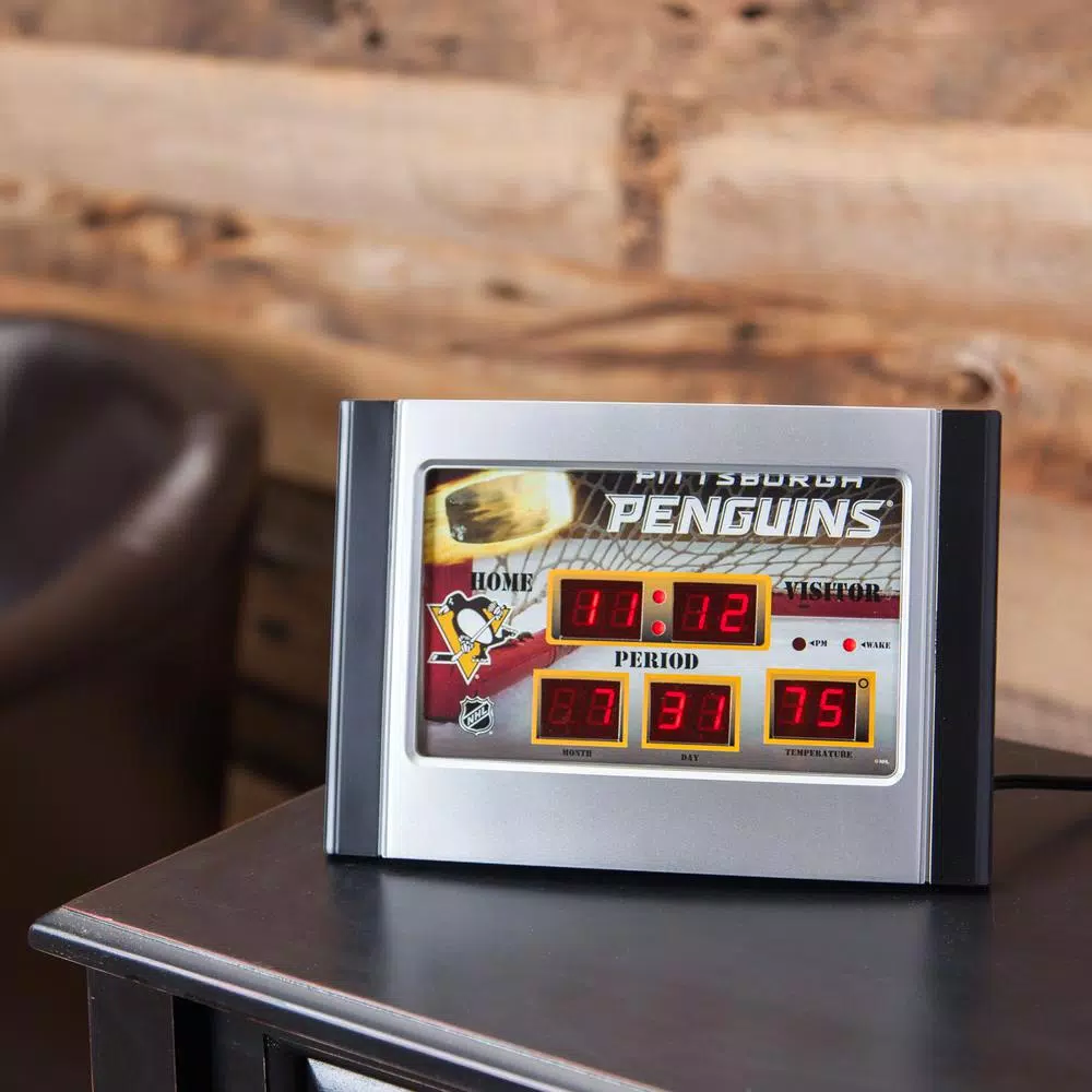 - Shaped like a scoreboard, with officially-licensed logos and colors, for an authentic feel