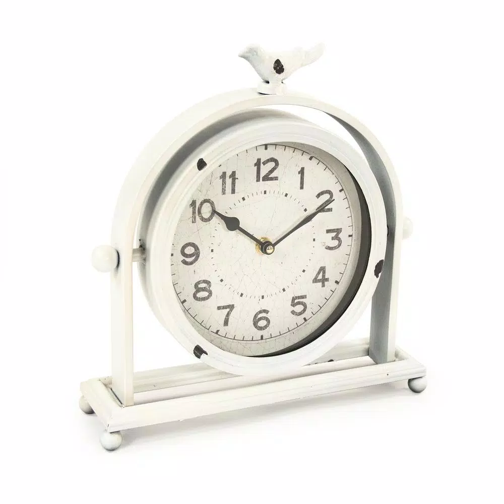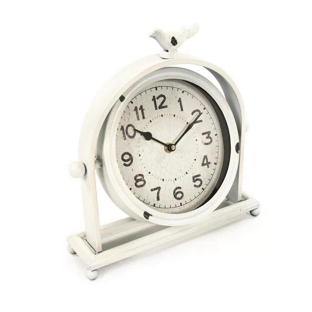 Time is of the essence with the ZEN-54093A 11 x 11.25 x 3. The focal point of this clock is completed with a metal hinged base and glossy background. The vintage-inspired distressed white metal hinged with distressed porcelain background provides a high quality look and feel.