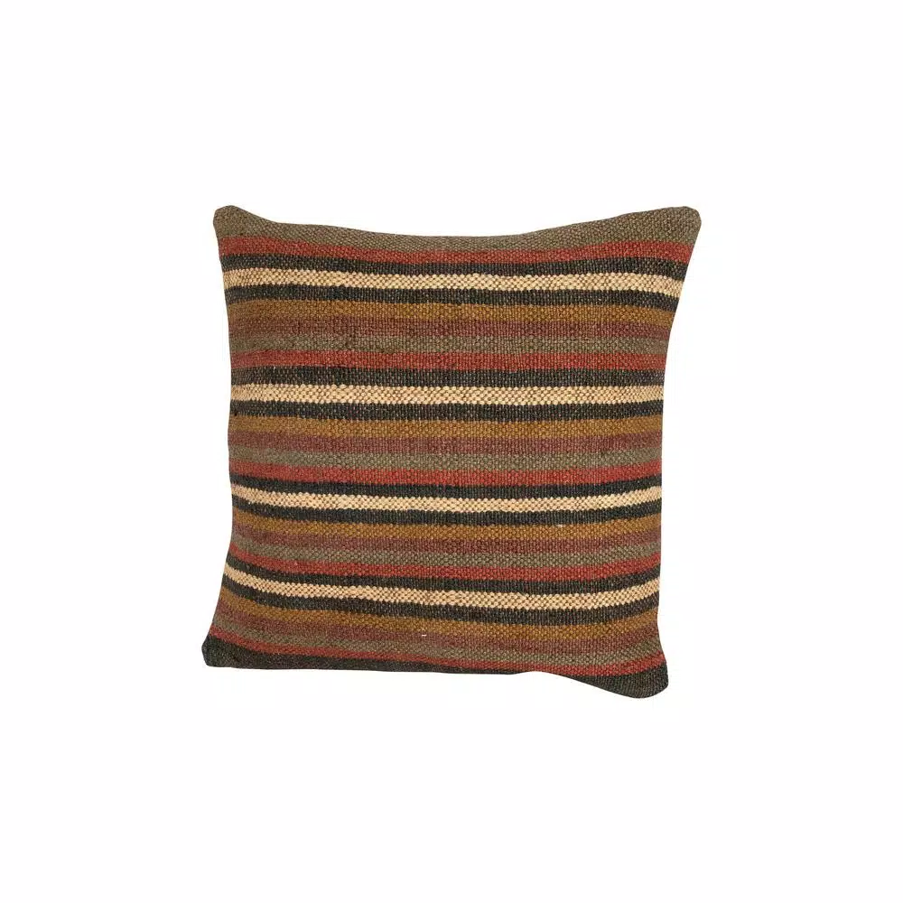 Warm stripes of forest green, grey, maroon and mustard contrast the few light cream stripes scattered within. Warm and cozy, this pillow evokes thoughts of being wrapped up in a warm blanket in front of a fireplace. Spread a maroon rug in front of the couch and a combination of luxurious forest green and cream throws over the back of the couch. Finish off the setting by adding this fantastic pillow to one side with dark mustard candles nearby. The warm and cozy atmosphere will encourage evenings of family togetherness.