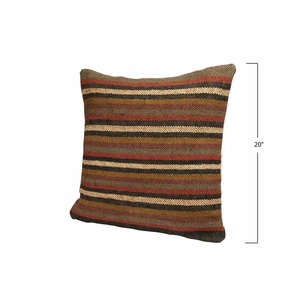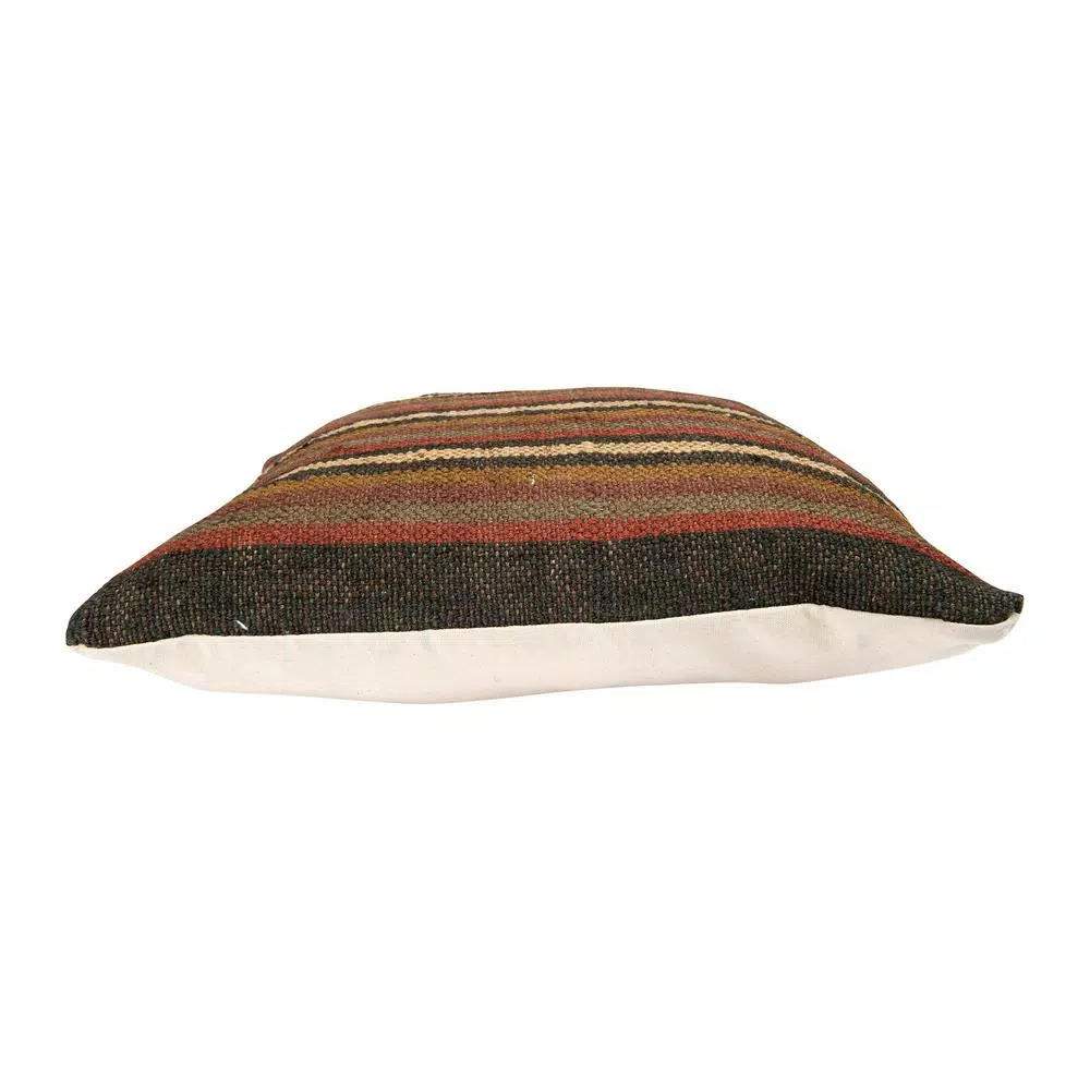 - Handwoven stripes of grey, maroon, forest green and mustard bring warmth to the room decor