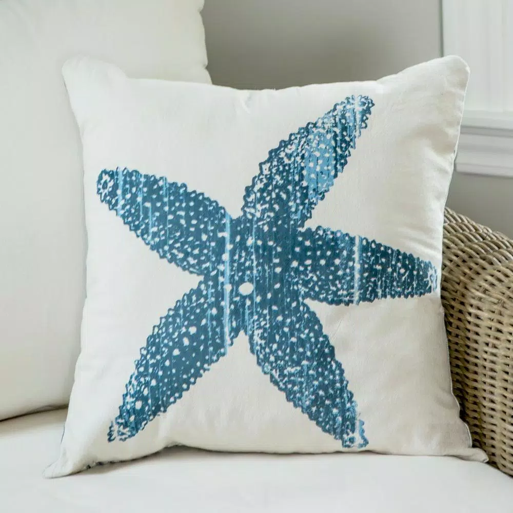 This Starfish pillow will put you in mind of an ocean paradise, no matter where you are. Featuring hues of blue and cream, and printed on a cotton flour sack cover. Made of high quality materials. Perfect for any living room or bedroom.