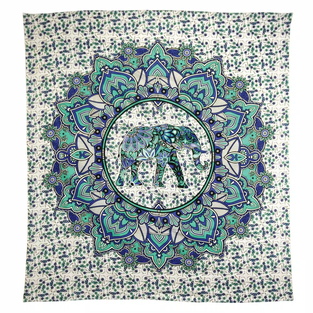 Featuring an intricate elephant in the midst of a medallion, this tapestry is a bohemian dream come true. Its off-white, teal, and purple hues lend to its whimsical charm. Ganesha Wall Tapestry contains 1-piece that measures 92.52 in. x 84.64 in.
