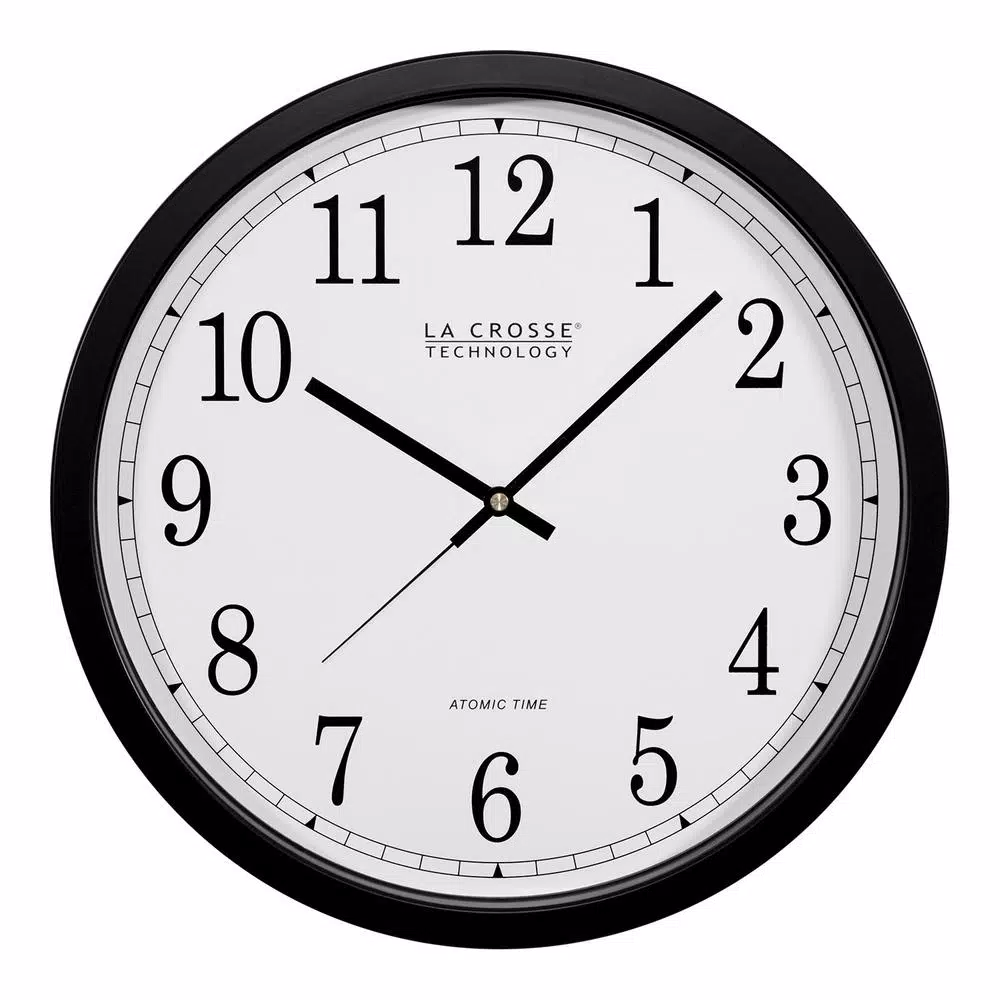 This plastic-framed wall clock measures 14 in. in Dia and looks most at home hanging in an office or business setting. However, this clock’s claim to fame is its precision time-keeping and the fact that it never needs to be set. The clock has a built-in antenna system that receives signals from the WWVB radio transmitter in Fort Collins, Colorado, which is in turn is regulated by the atomic clock. Once you install the battery and choose one of four U. S. time zones, the clock automatically sets to the accurate time in hours, minutes, and seconds, and continues to adjust itself 9 times daily. This low-maintenance clock even automatically adjusts for daylight savings time, so you never need to remember to spring ahead or fall backward. This radio-controlled clock is covered by a 1-year warranty, AA alkaline batteries (not included).