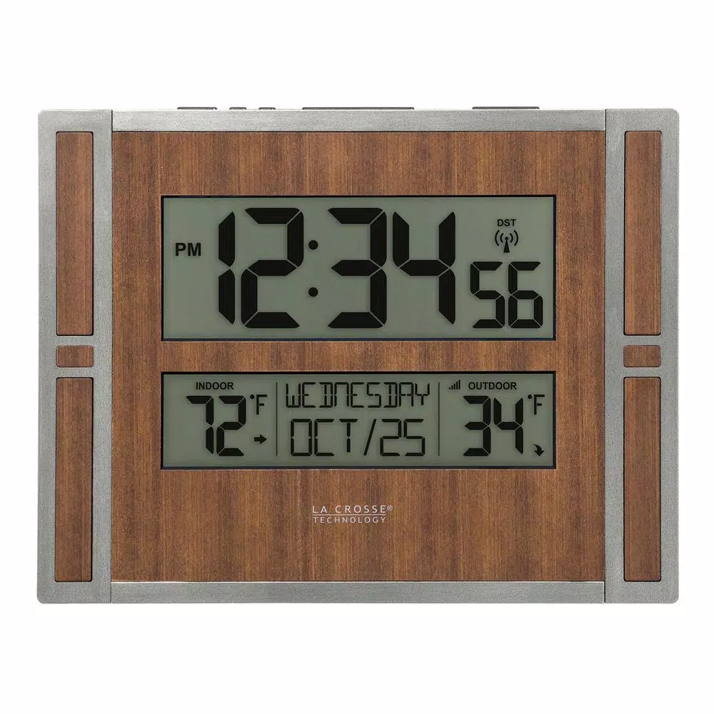Modernize with this accurate digital clock featuring self-setting atomic time and automatic daylight saving time resets. Be ready for the weather with included wireless outdoor transmitting temperature sensor. Displays indoor and outdoor temps with trending arrows showing you if weather will improve or not. Low battery icon indicates if batteries need replacing.