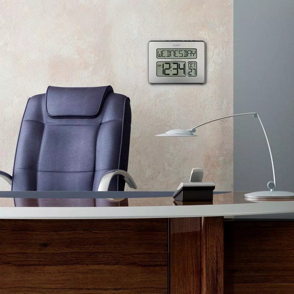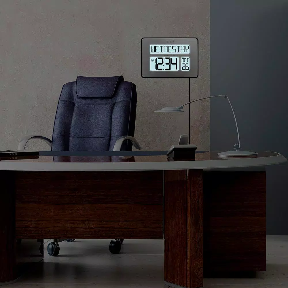 Easy to read, day or night, this wall clock makes a perfect gift. Time digits measure close to 2-1/2 in. H and day of the week is 1 in. and features a nighttime backlight. Clock is lightweight made of durable plastic and is simple to operate. Battery operated or use included AC adapter (optional) and keeps your time accurately as its self-setting according any one of 7 US time zone settings. Low power indicator icon lets you know when batteries will need changing.