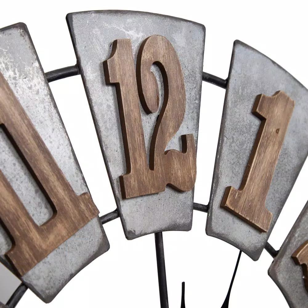 The Gallery Solutions Oversized Metal and Wood Windmill Wall Clock is a timeless focal point with traditional elements and farmhouse flair. Wall clock frame is constructed of metal with a beautifully distressed finish. Each clock number is crafted from solid wood that’s raised for a dimensional look. This gorgeous timekeeper offers rustic charm and antique style. Oversized wall clock measures 33.75 x 33.75 x 1.5 in., but it’s minimalist design won’t overwhelm your space. Add a refreshing statement piece with country charm to your space with this Oversized Metal and Wood Windmill Wall Clock.
