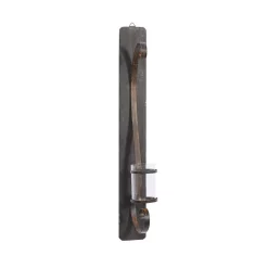Wall Accents LITTON LANE Rectangular Industrial Black Metal And Natural Wood Wall Sconces, Set Of 2