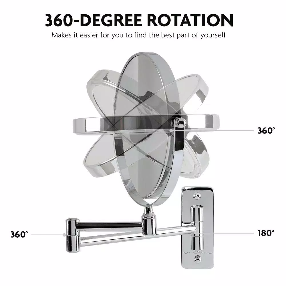 Enhance Your Home’s Glam Factor for Less! Ovente’s Wall-Mounted Dual-Sided Makeup Mirror mounts to your wall to provide an elegant addition to your home. The 360° swivel design makes switching between the 1x magnification and the 10x magnification sides easy. Use the 1x magnification side for a distortion-free view while the 10x magnification is perfect for when the little details matter. This mirror does not warp, bend or, in any other way, distort its reflection. Allows you to truly see what everyone else sees. Utilize the mirror’s extending arm to position your mirror exactly where you want it, achieving virtually any angle. Then fold your mirror up against the wall, saving space when it’s not in use. You will no longer have to remember where you last left your mirror. This elegant mirror enhances any room with its contemporary, stylish design and beautiful Polished Chrome finish. The Ovente Wall-Mounted Dual-Sided Makeup Mirror truly is the perfect solution for all your makeup application needs as well as tweezing and shaving. This easy-to-install mirror includes all mounting hardware, saving you time and allowing you to enjoy your new mirror, almost as soon as you take it out of the box.