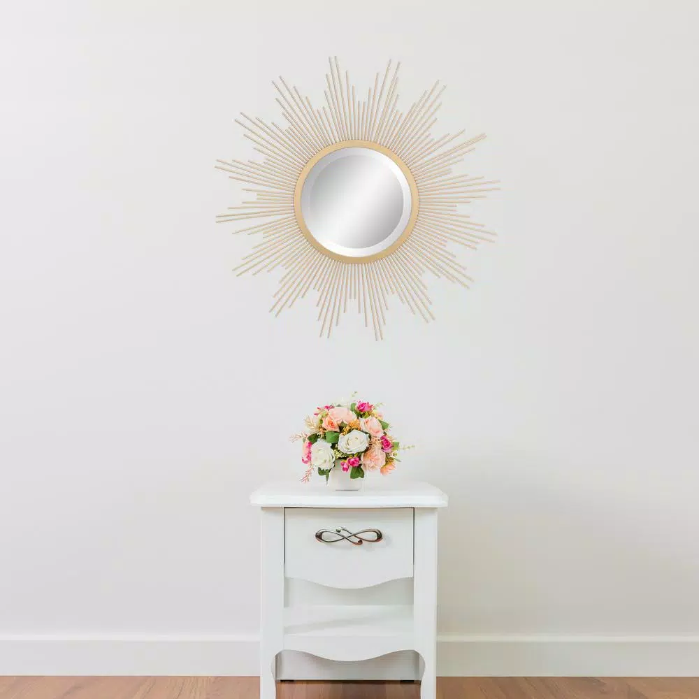 Instantly add an interesting focal point to any room in your home with Stonebriar’s Gold Sunburst Wall Mirror. This decorative mirror features a stylish metal wire sunburst design accented with an antique gold finish giving a little extra pop to your home decor. The end result is a striking and eye-catching piece perfect for your living room, entryway, bedroom, bathroom or any room in your home. Mirror comes with attached hanging hardware for easy installation right out of the box! Buy your Stonebriar Gold Sunburst Wall Mirror today and create an instant classic in your home decor.